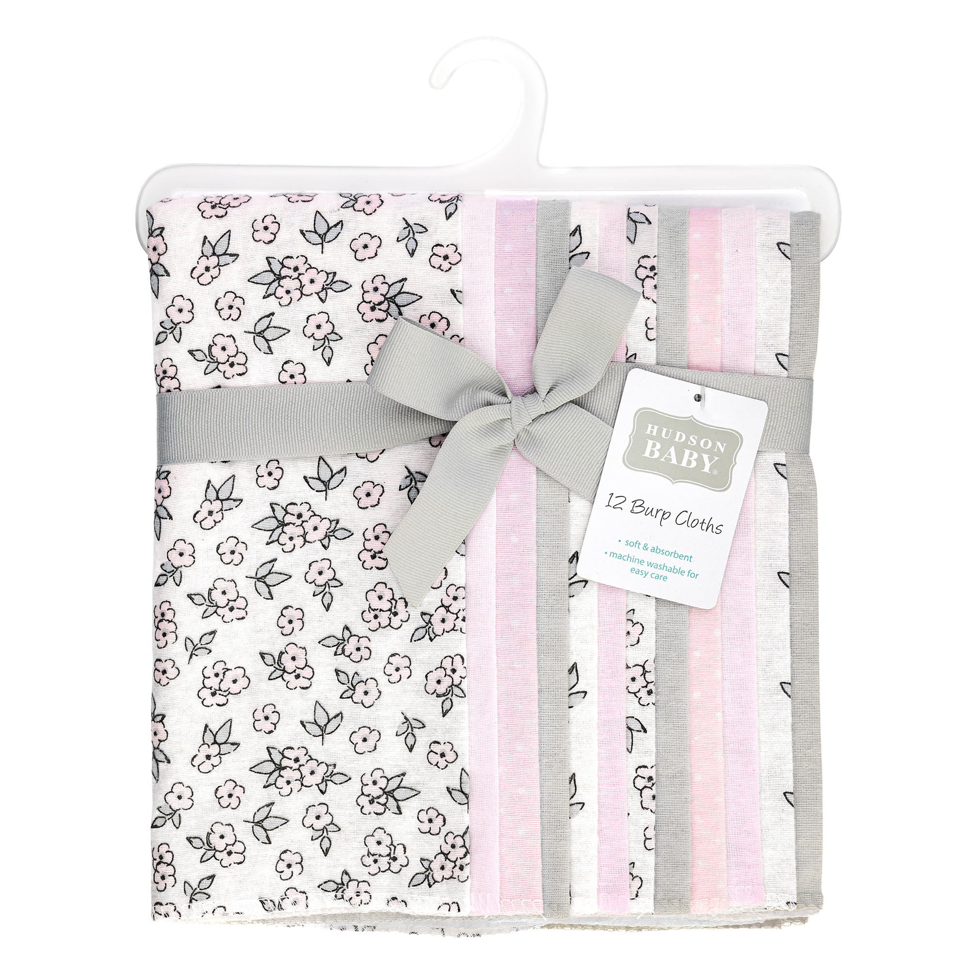 Hudson Baby Cotton Flannel Burp Cloths Bundle, Pink Primrose