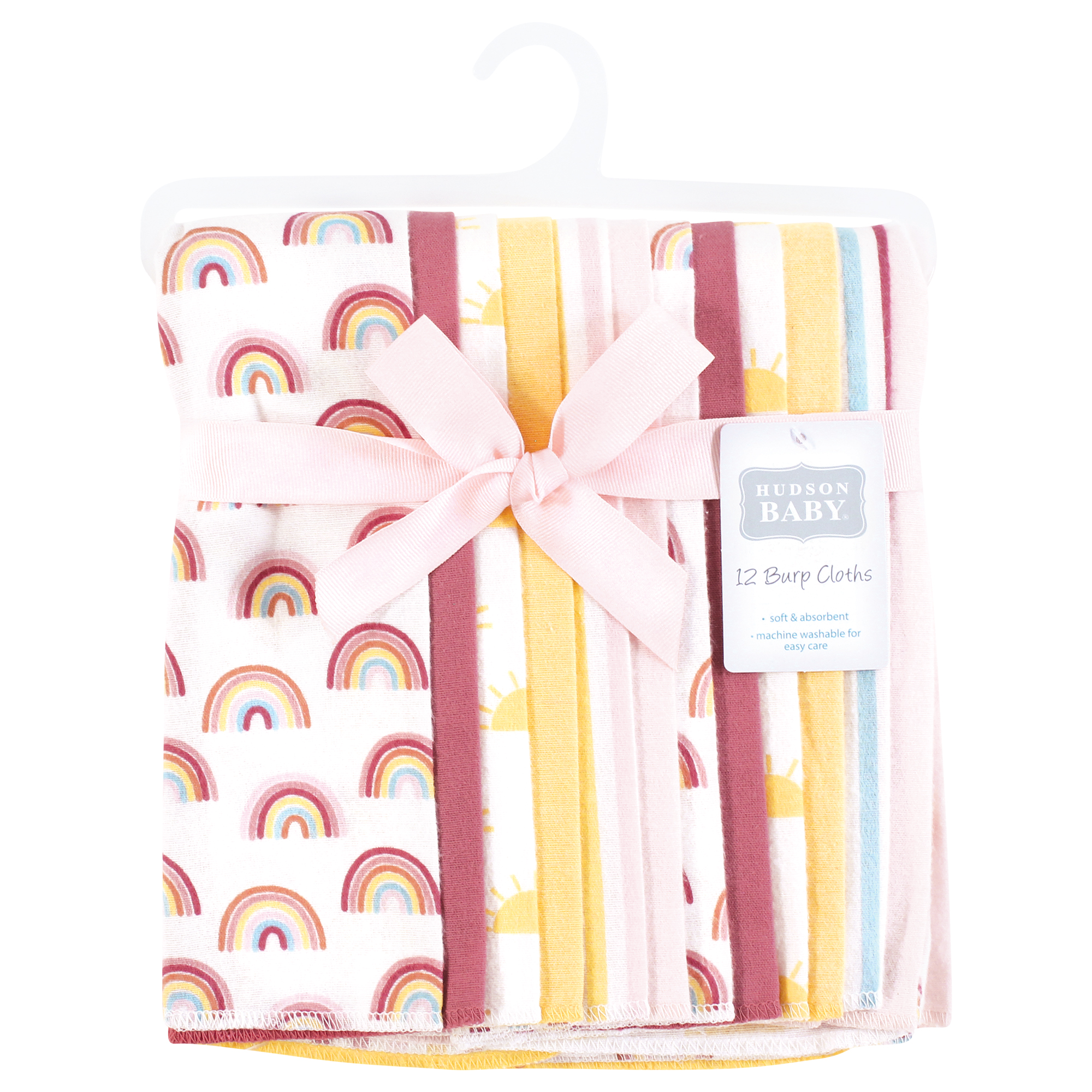 Hudson Baby Cotton Flannel Burp Cloths Bundle, Sunshine And Rainbows