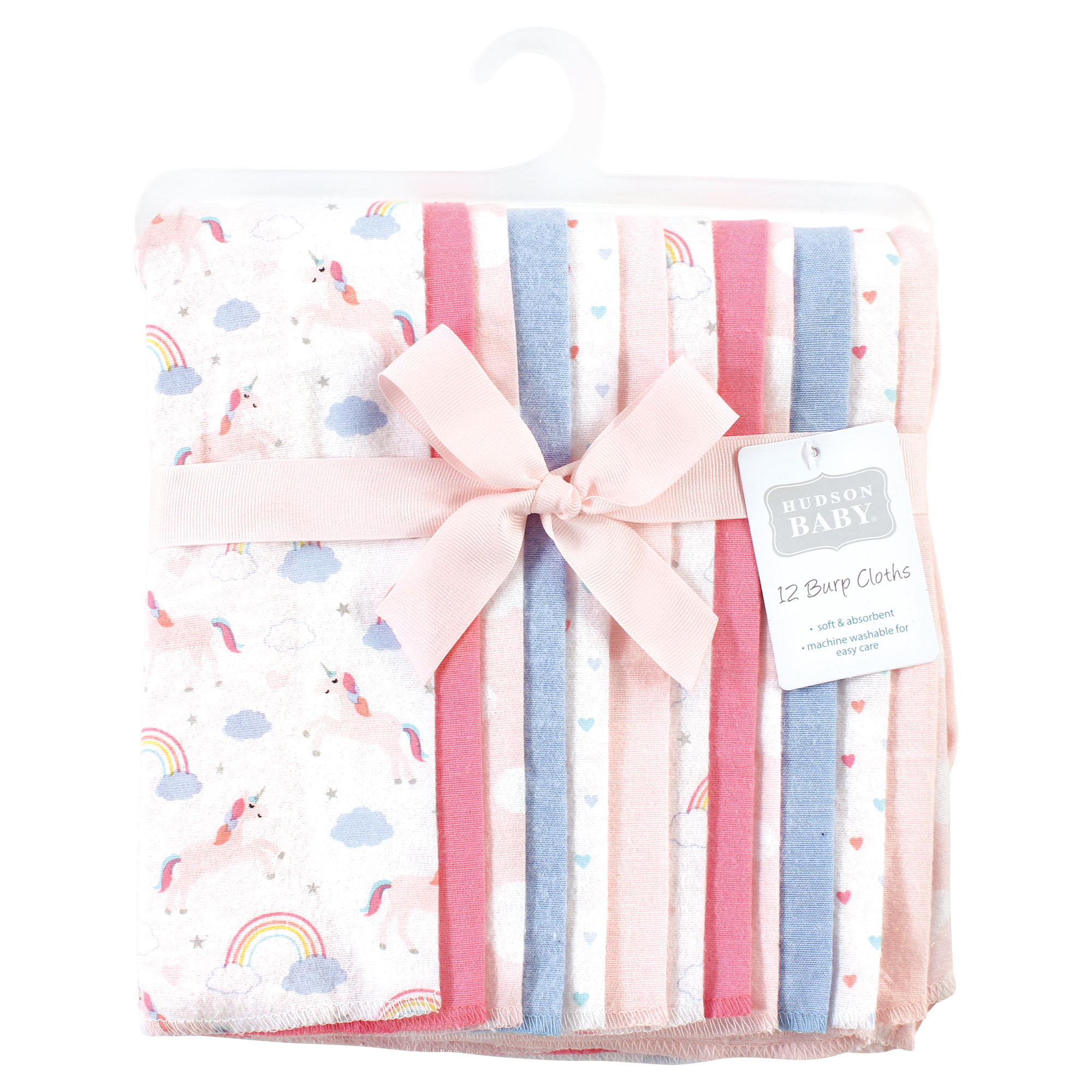 Hudson Baby Cotton Flannel Burp Cloths Bundle, Unicorns Rainbows