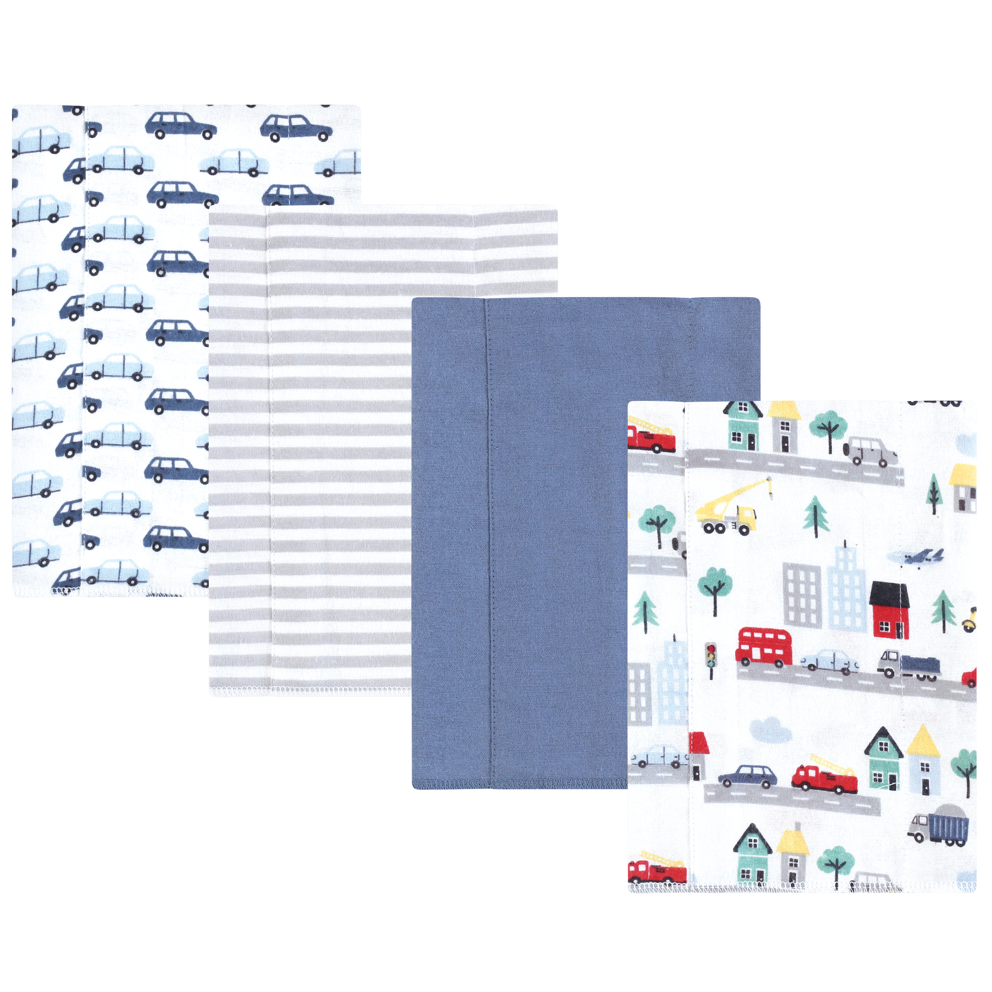 Hudson Baby Cotton Flannel Burp Cloths, City Life 4 Pack