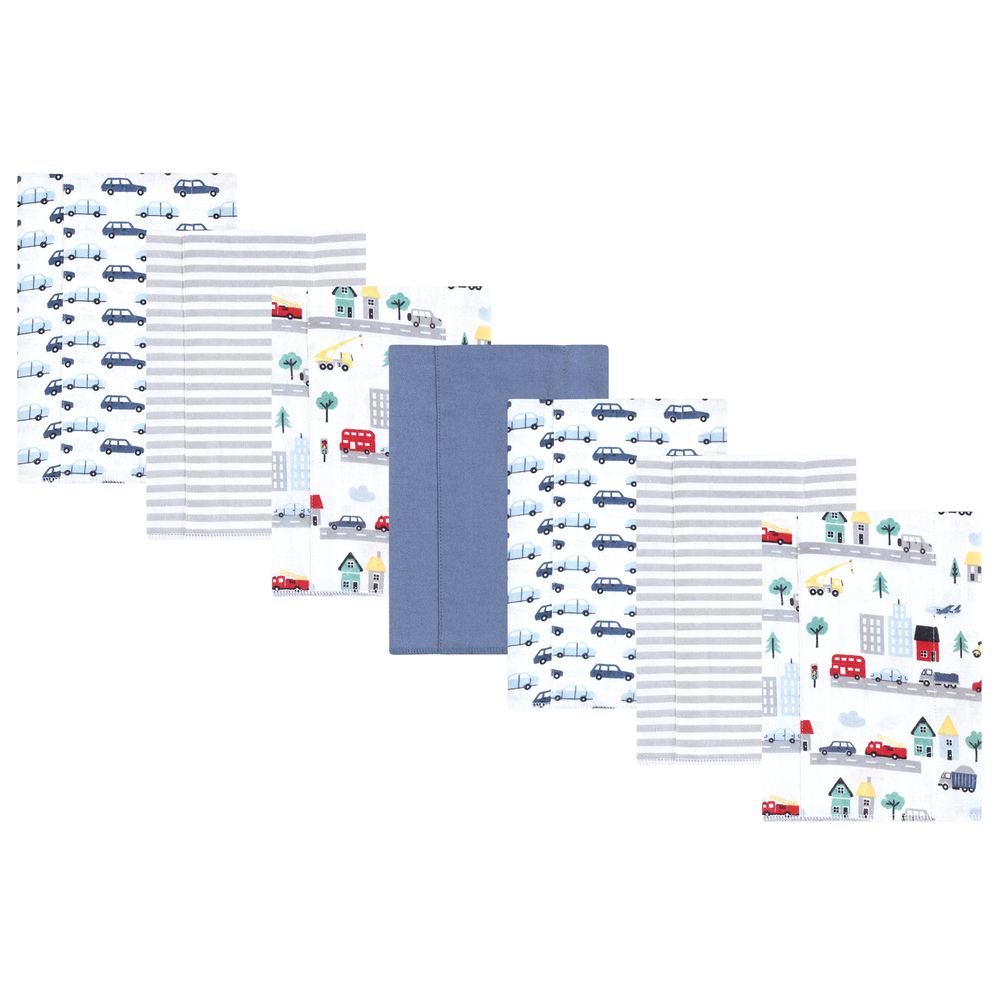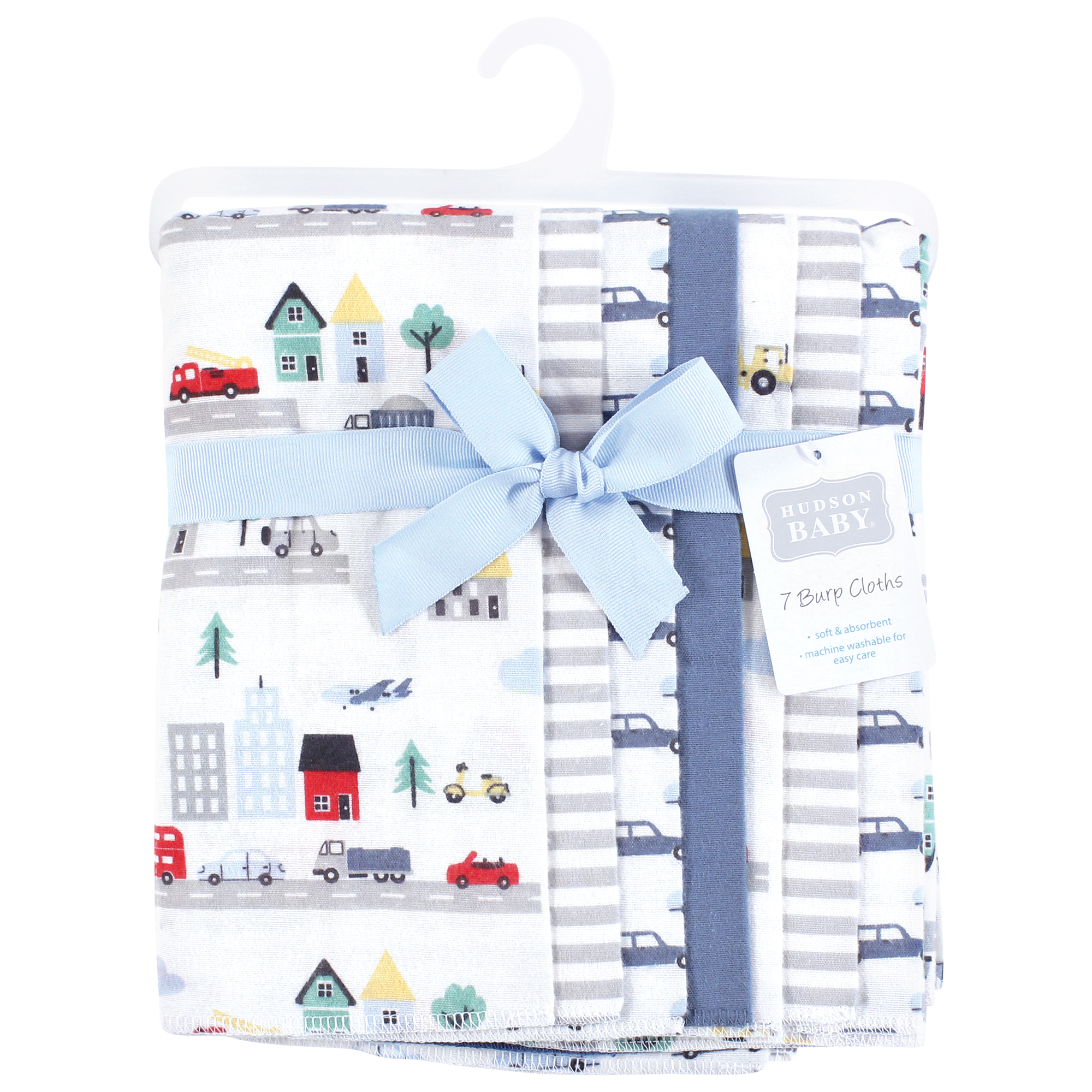 Hudson Baby Cotton Flannel Burp Cloths, City Life 7 Pack