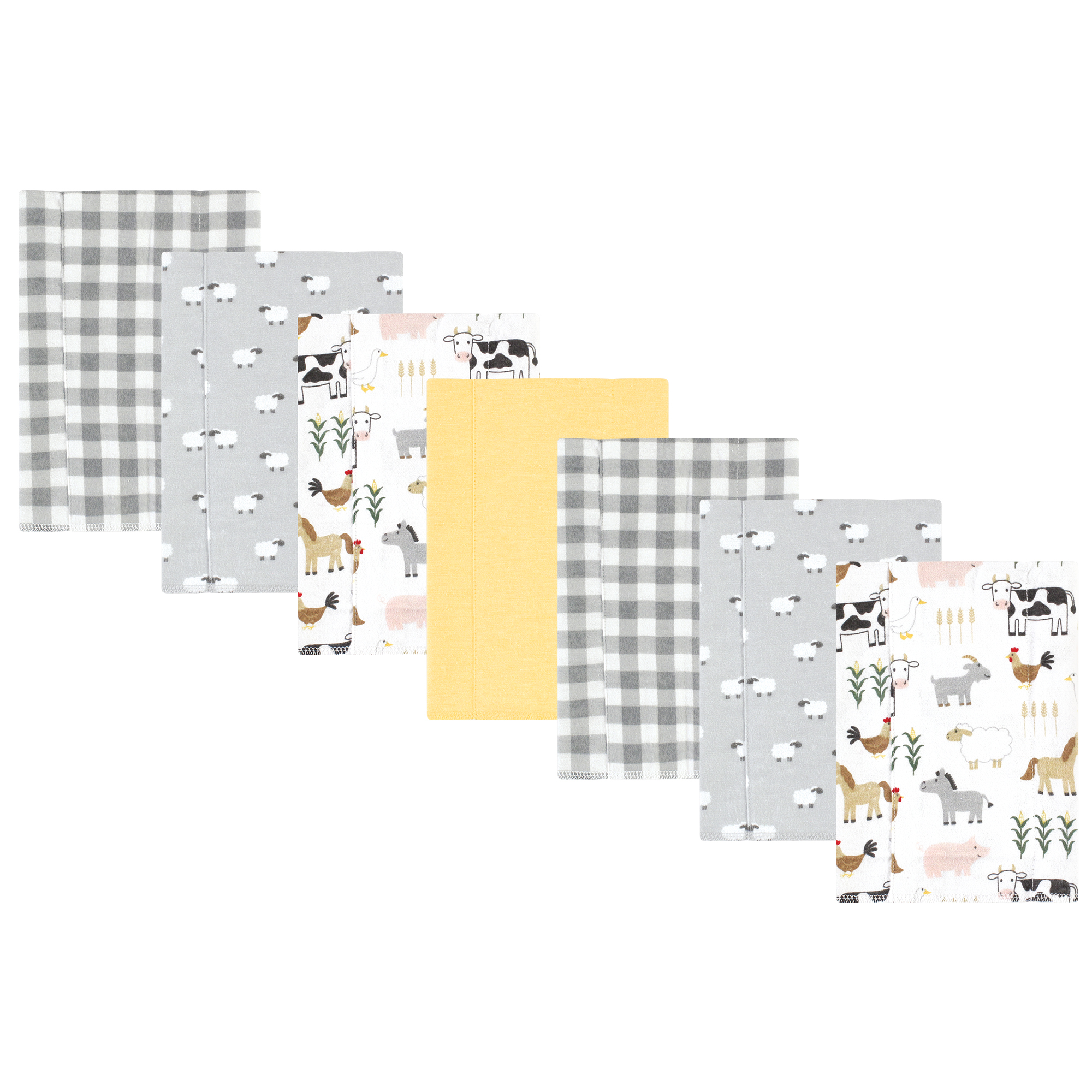 Hudson Baby Cotton Flannel Burp Cloths, Cute Farm 7-Pack