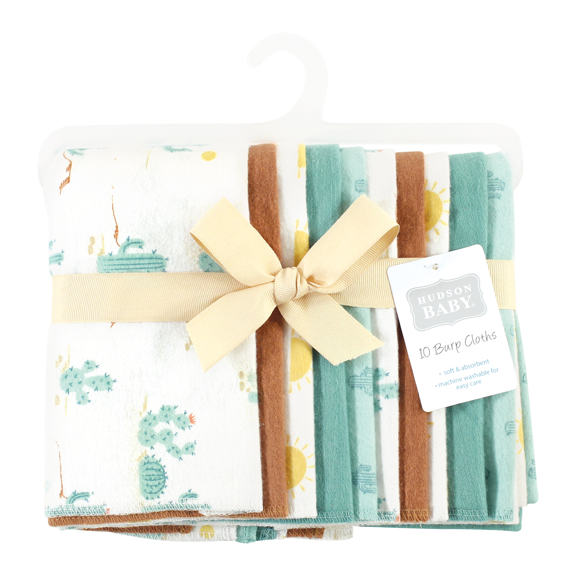 Hudson Baby Cotton Flannel Burp Cloths, Desert Cactus 10-Pack