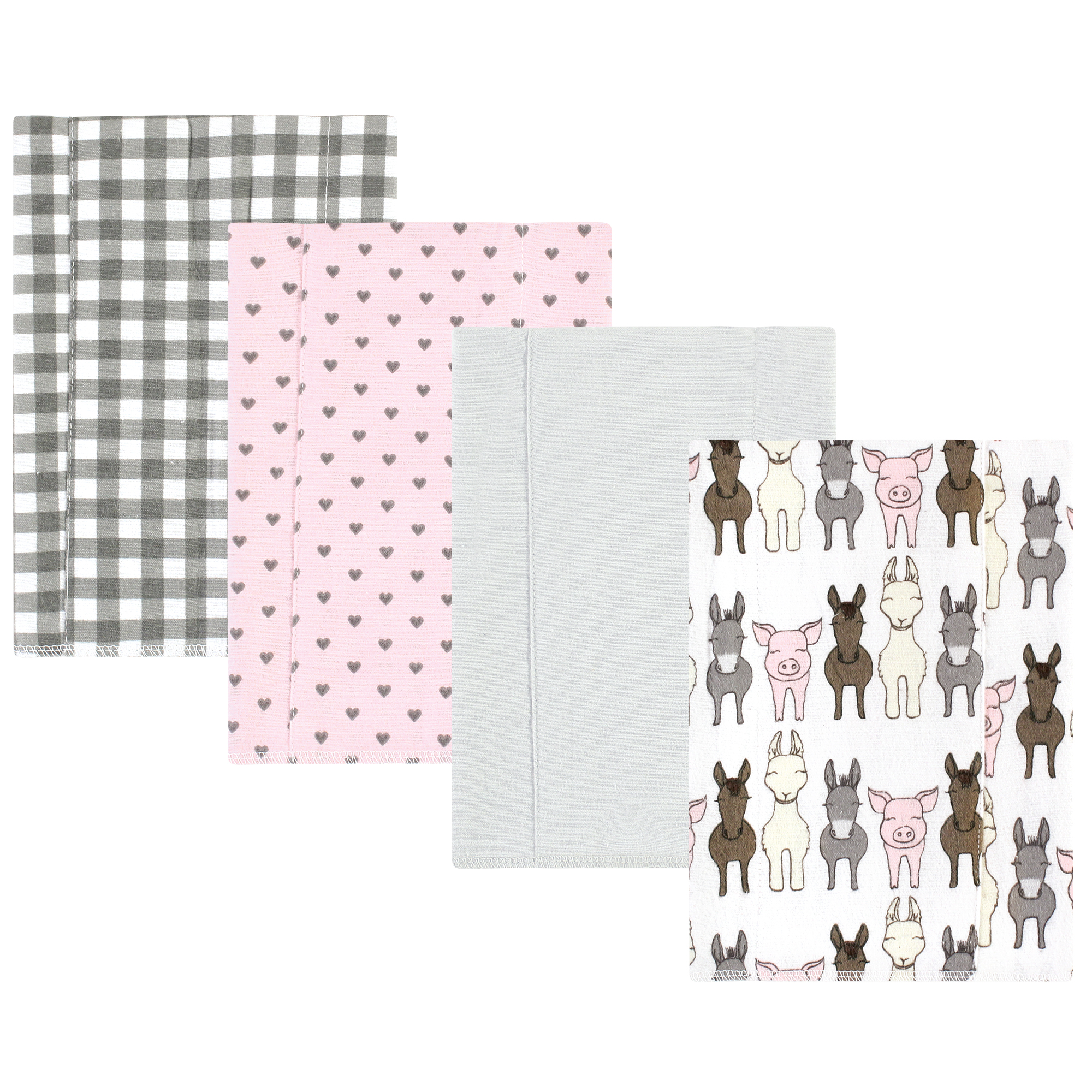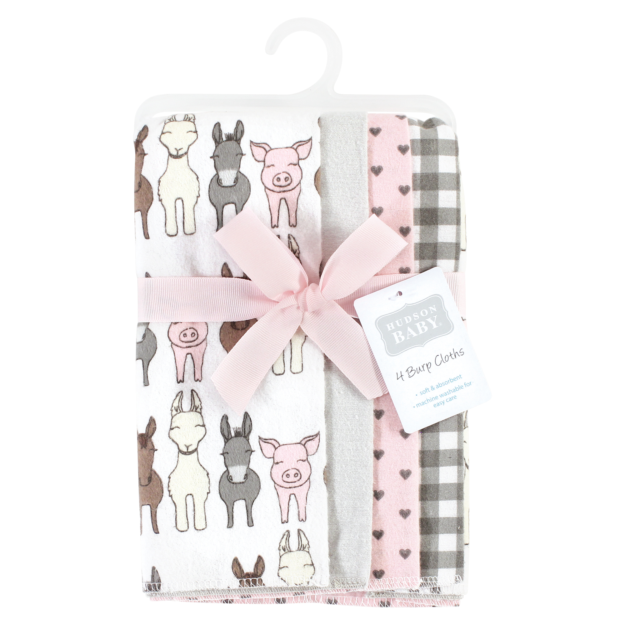 Hudson Baby Cotton Flannel Burp Cloths, Farm Friends Pink 4-Pack