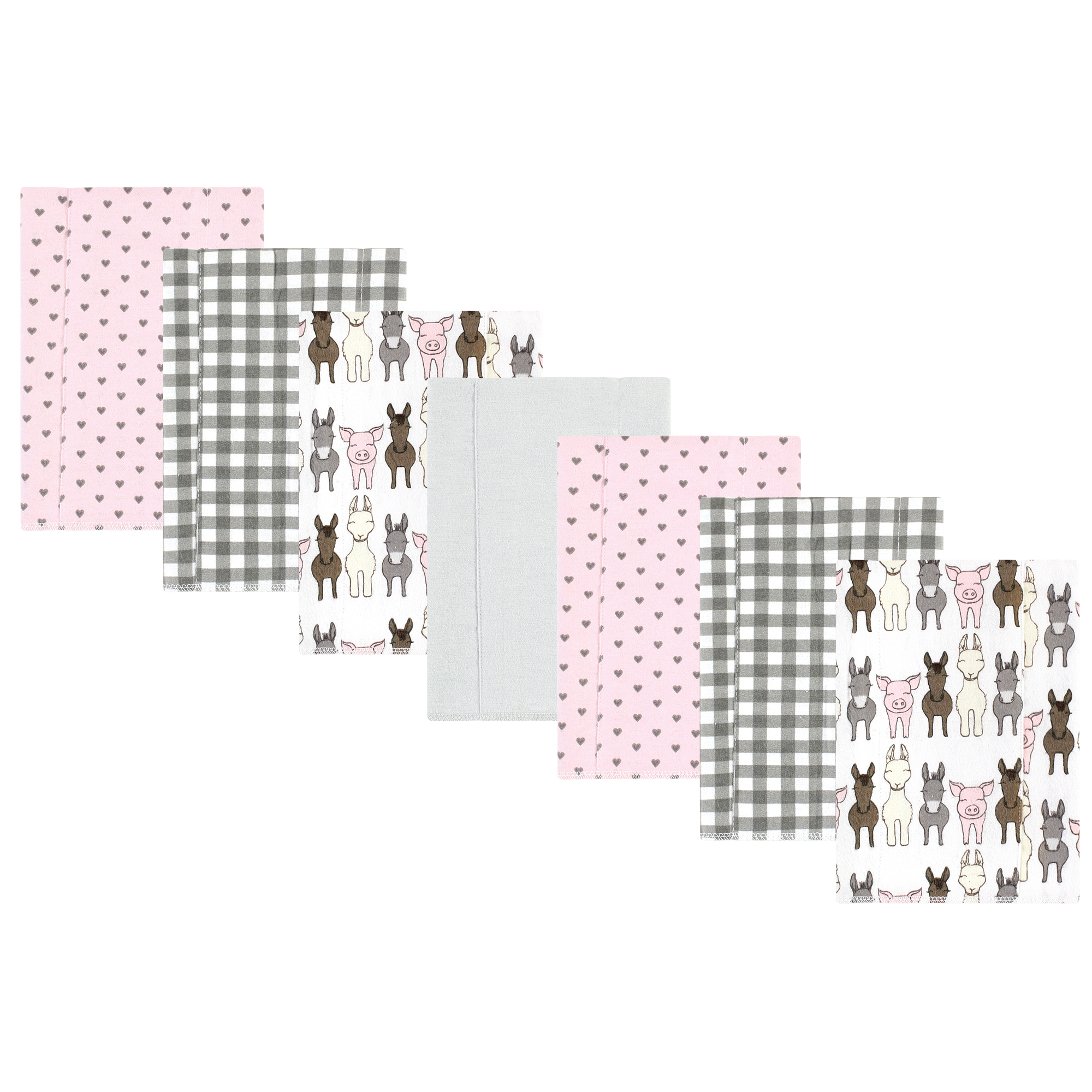 Hudson Baby Cotton Flannel Burp Cloths, Farm Friends Pink 7-Pack
