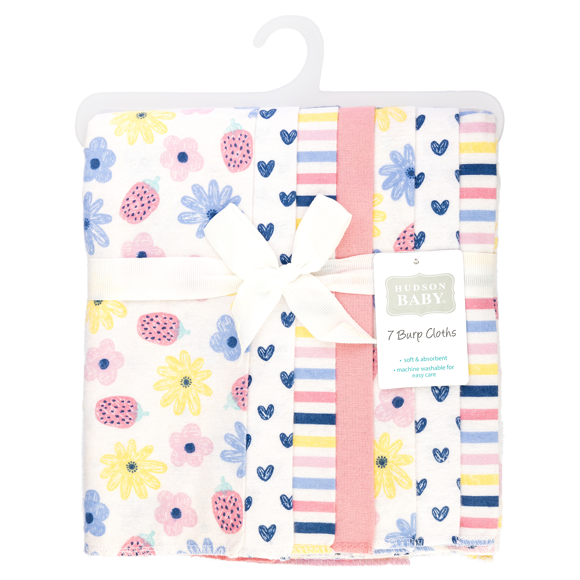 Hudson Baby Cotton Flannel Burp Cloths, Flowers And Strawberries 2