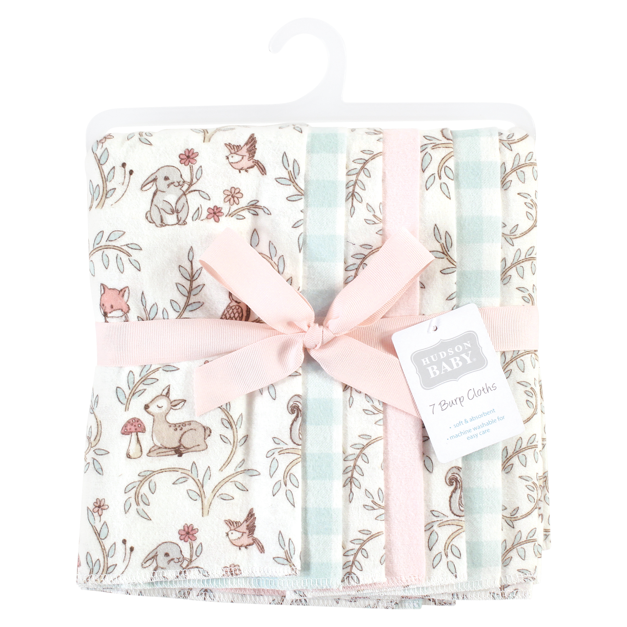 Hudson Baby Cotton Flannel Burp Cloths, Girl Woodland Pals