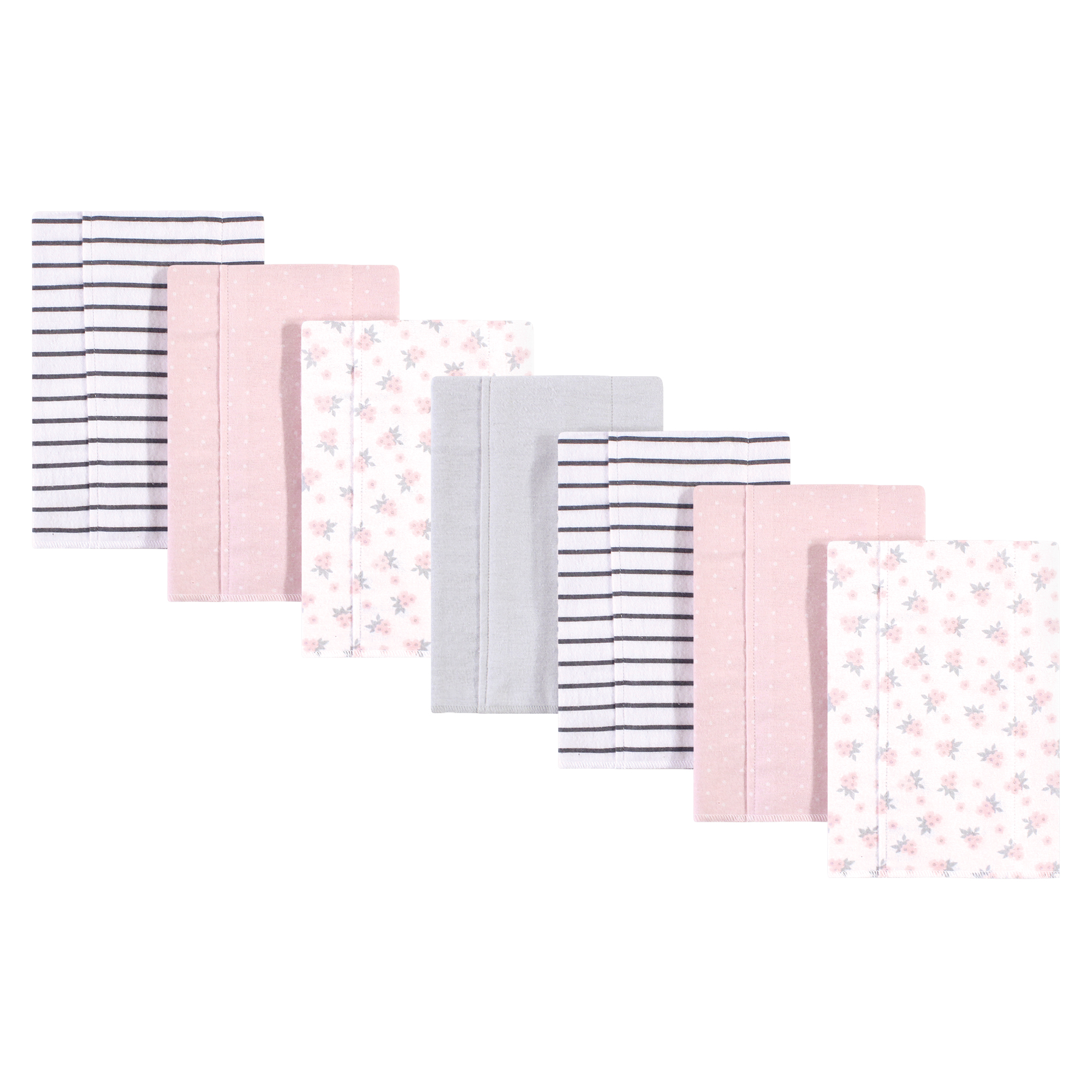 Hudson Baby Cotton Flannel Burp Cloths, Gray Pink Floral