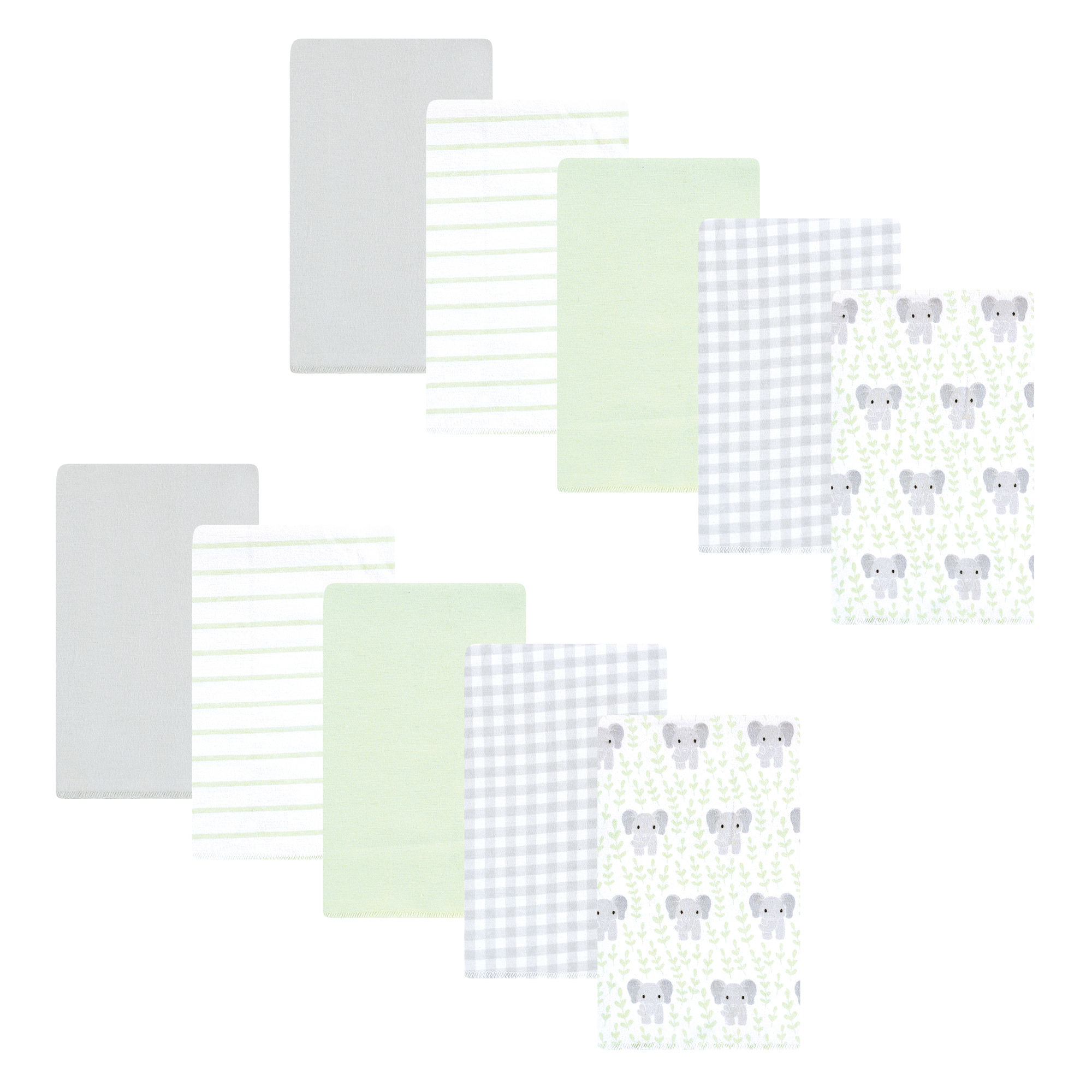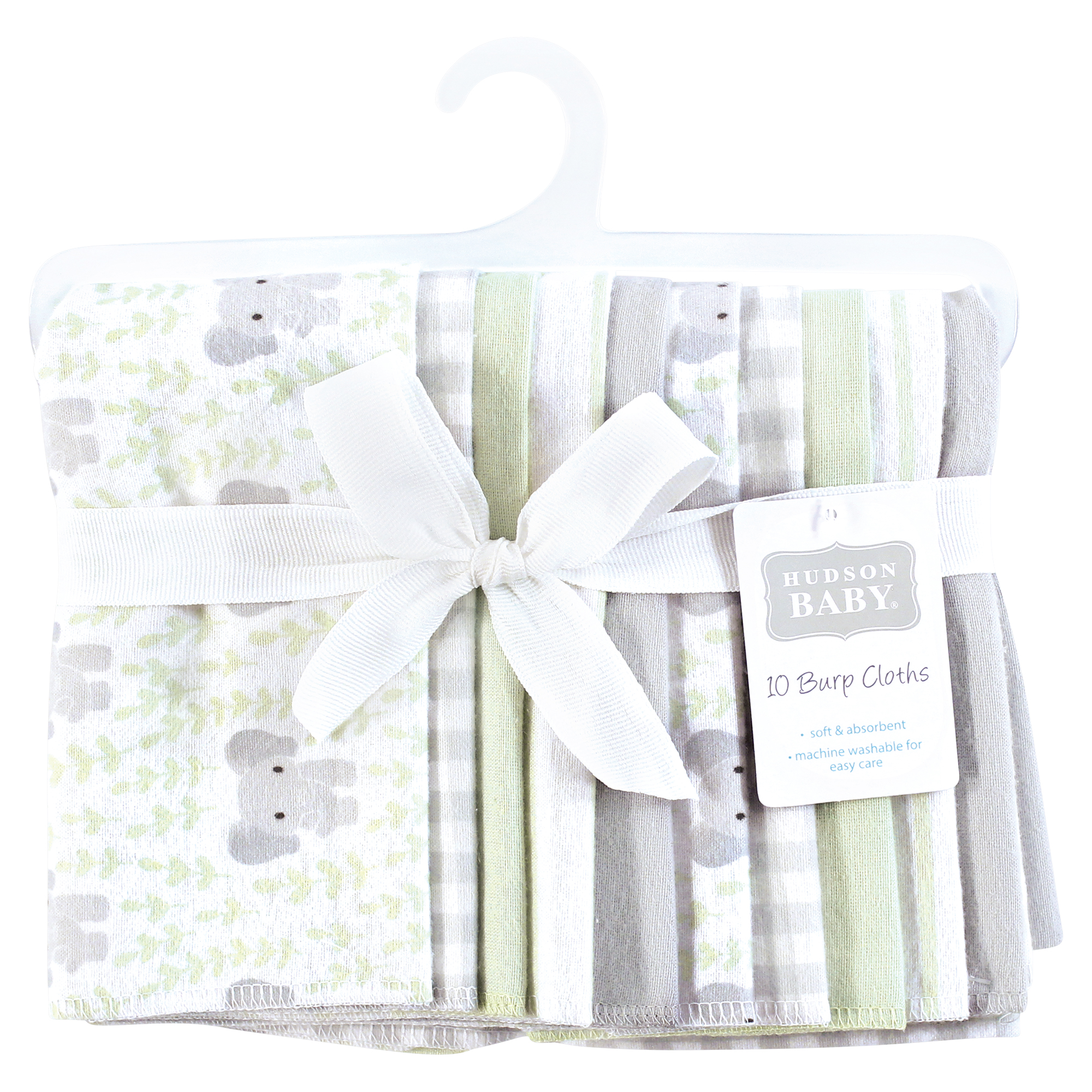 Hudson Baby Cotton Flannel Burp Cloths, Leafy Elephant 2