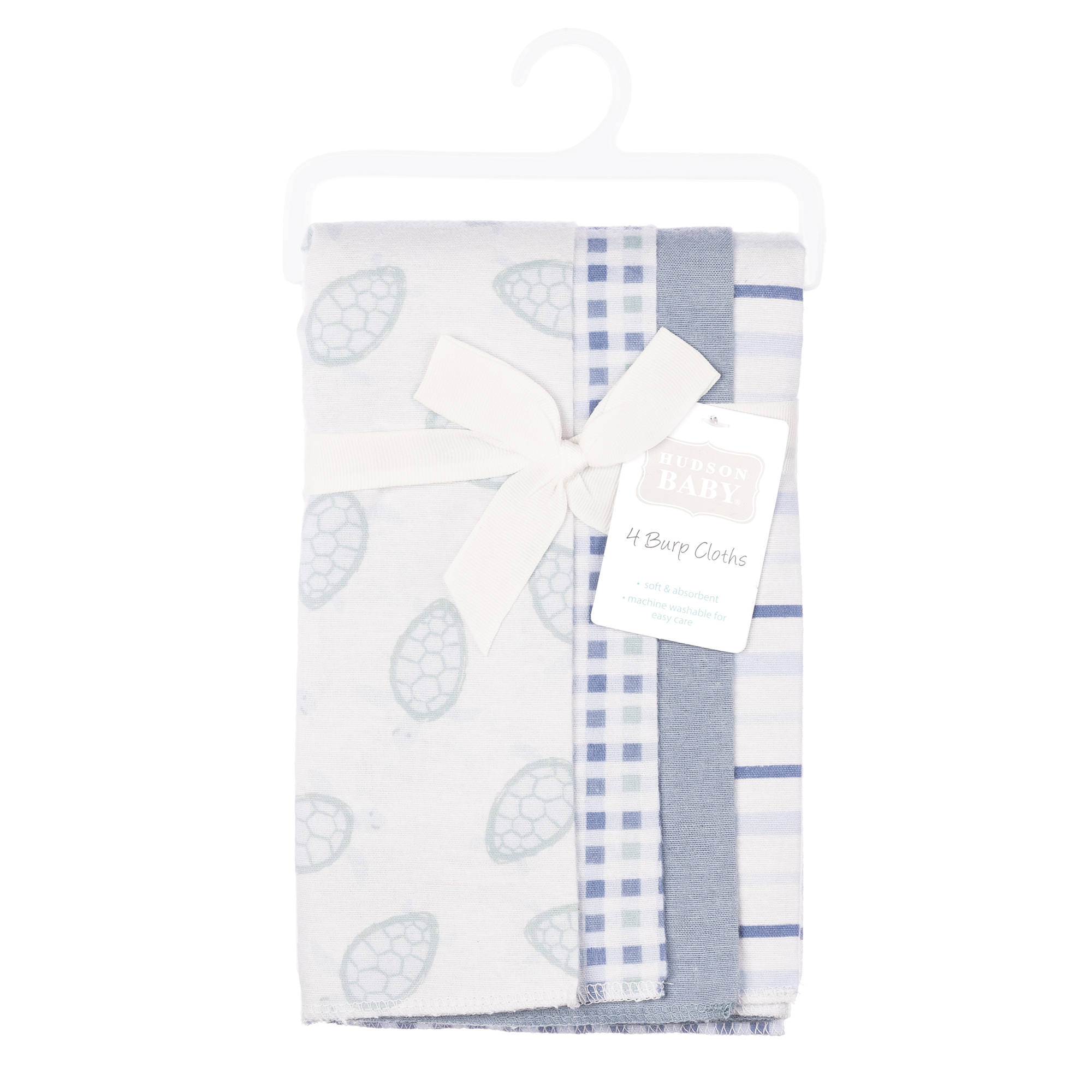 Hudson Baby Cotton Flannel Burp Cloths, Little Sea Turtle 4-Pack