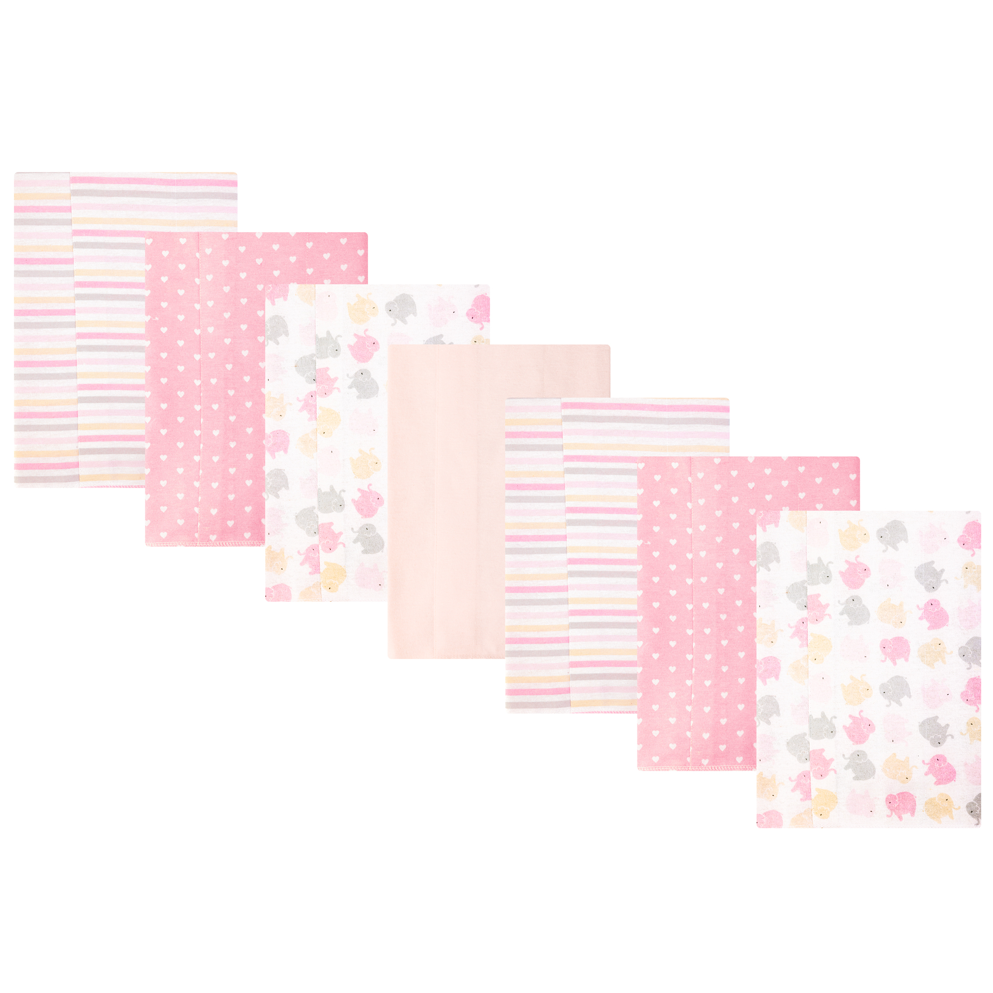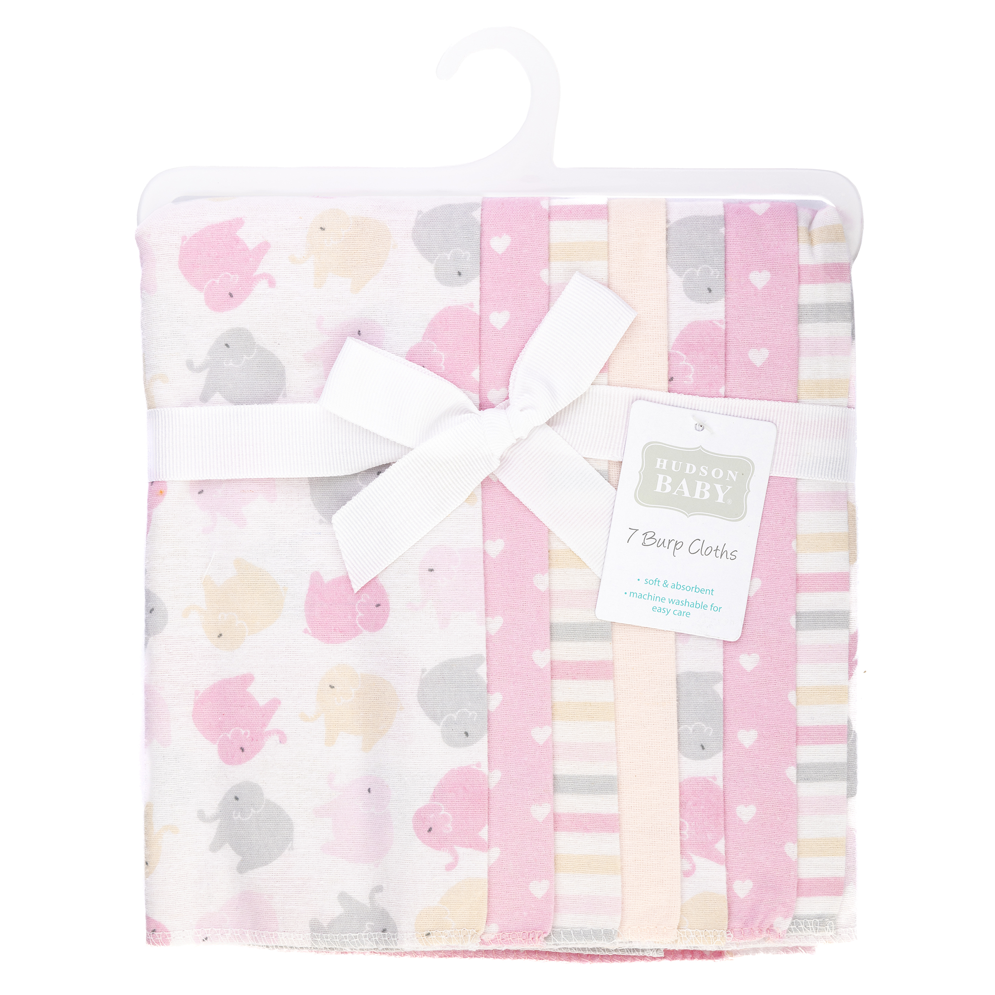Hudson Baby Cotton Flannel Burp Cloths, Multi Color Girl Elephant 2