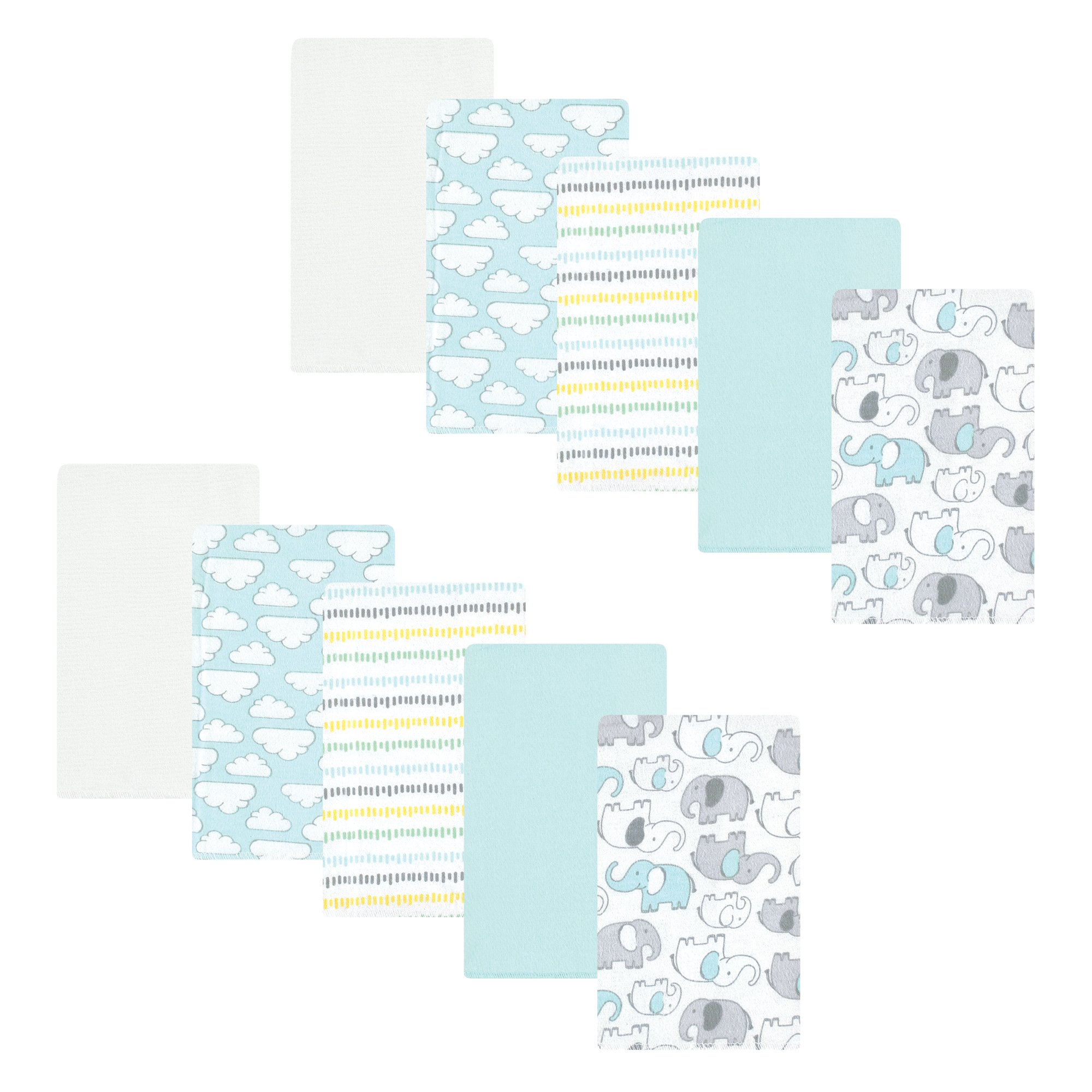 Hudson Baby Cotton Flannel Burp Cloths, Neutral New Elephant 10-Pack