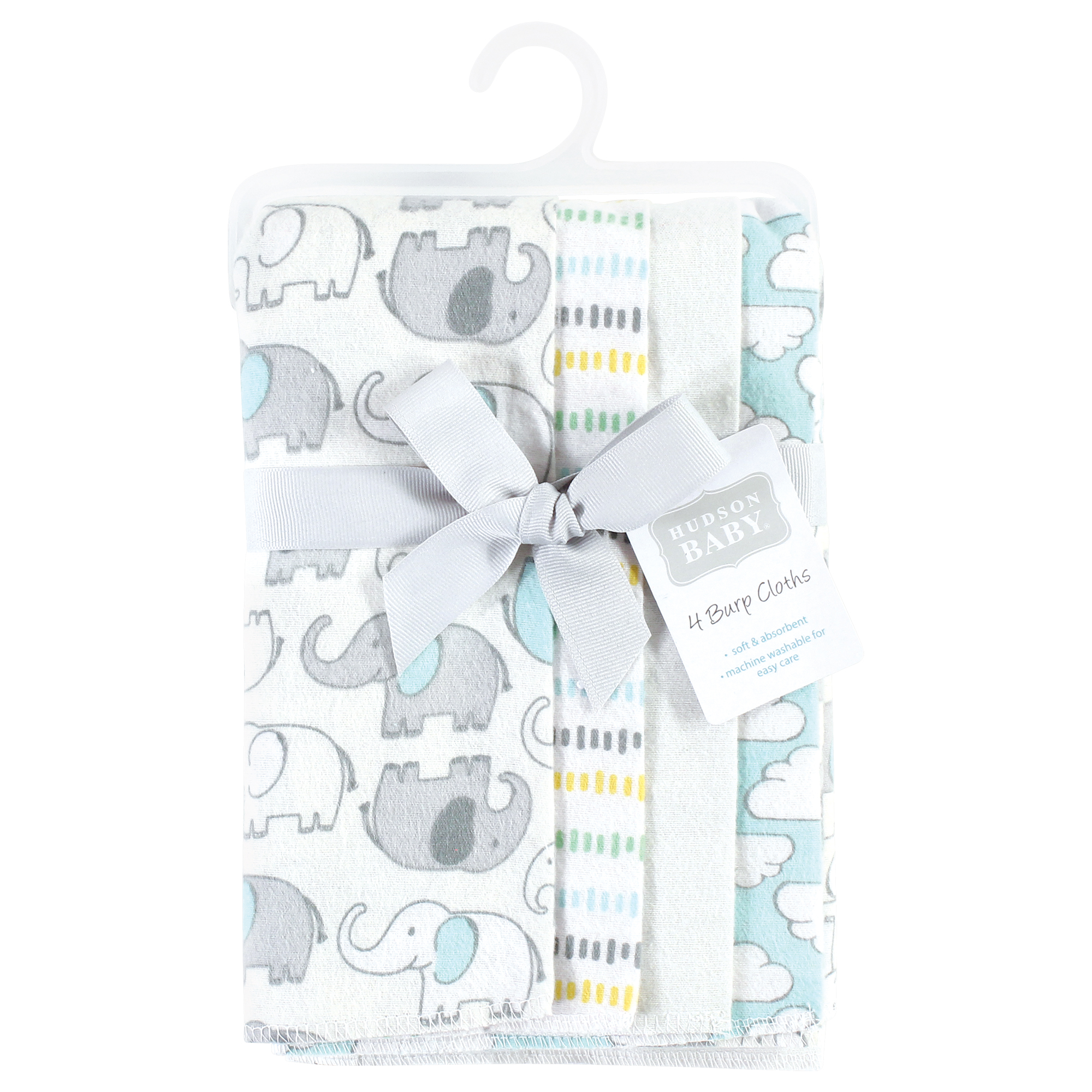 Hudson Baby Cotton Flannel Burp Cloths, Neutral New Elephant 4-Pack