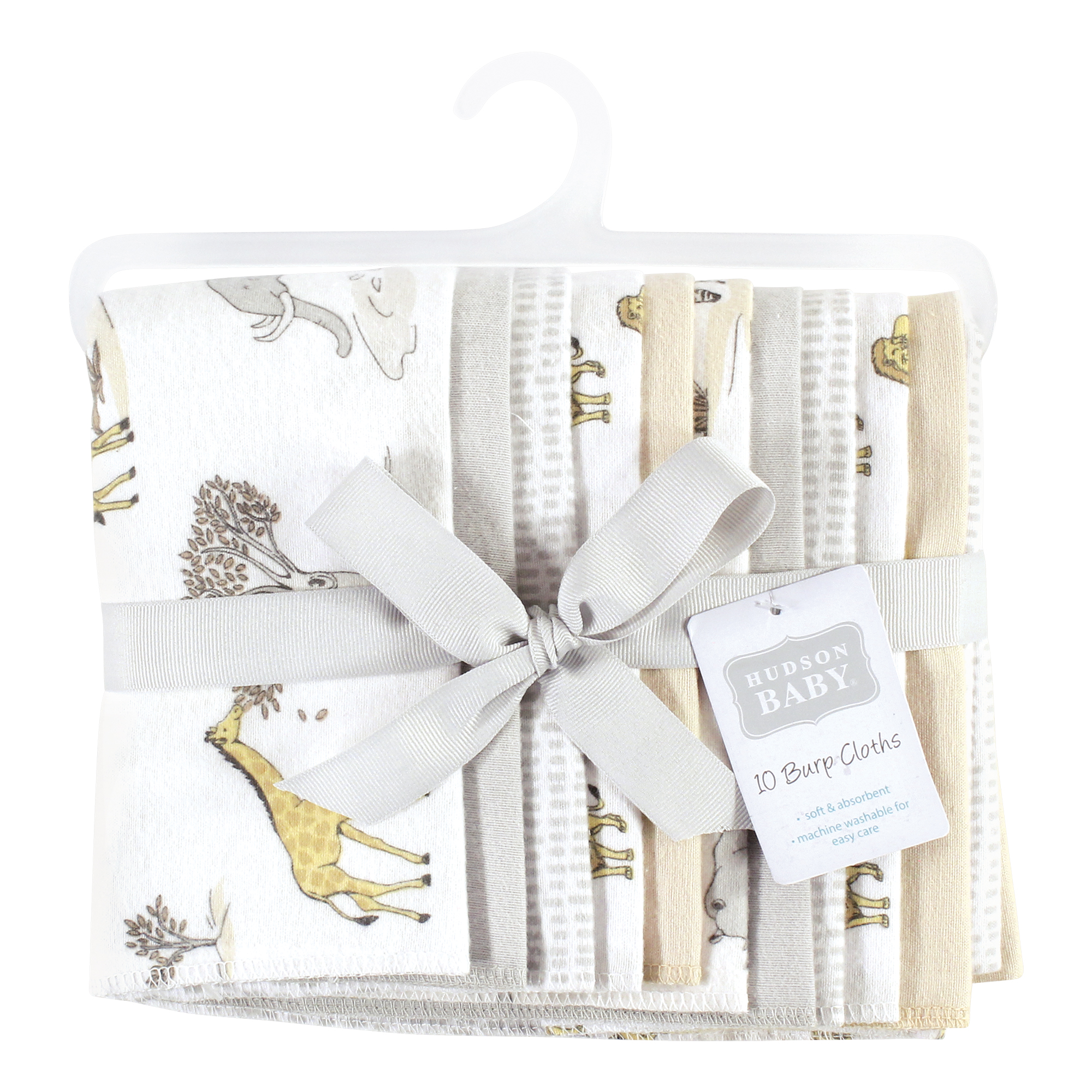 Hudson Baby Cotton Flannel Burp Cloths, Neutral Safari World 10-Pack