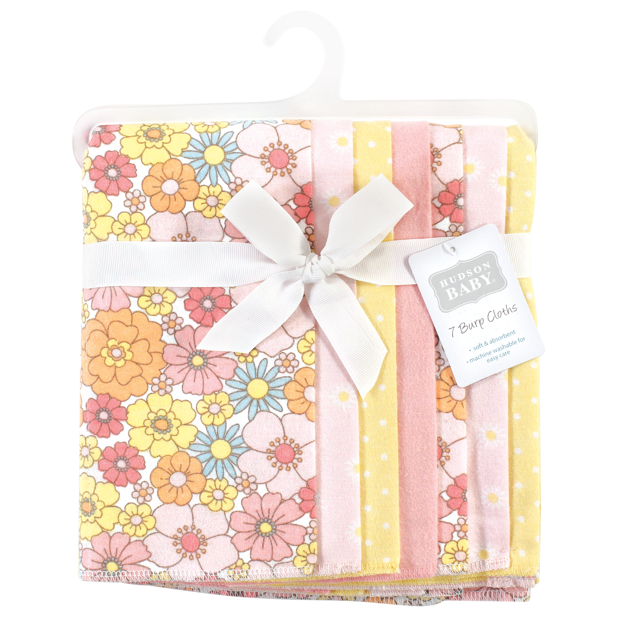 Hudson Baby Cotton Flannel Burp Cloths, Peace Love Flowers 7 Pack