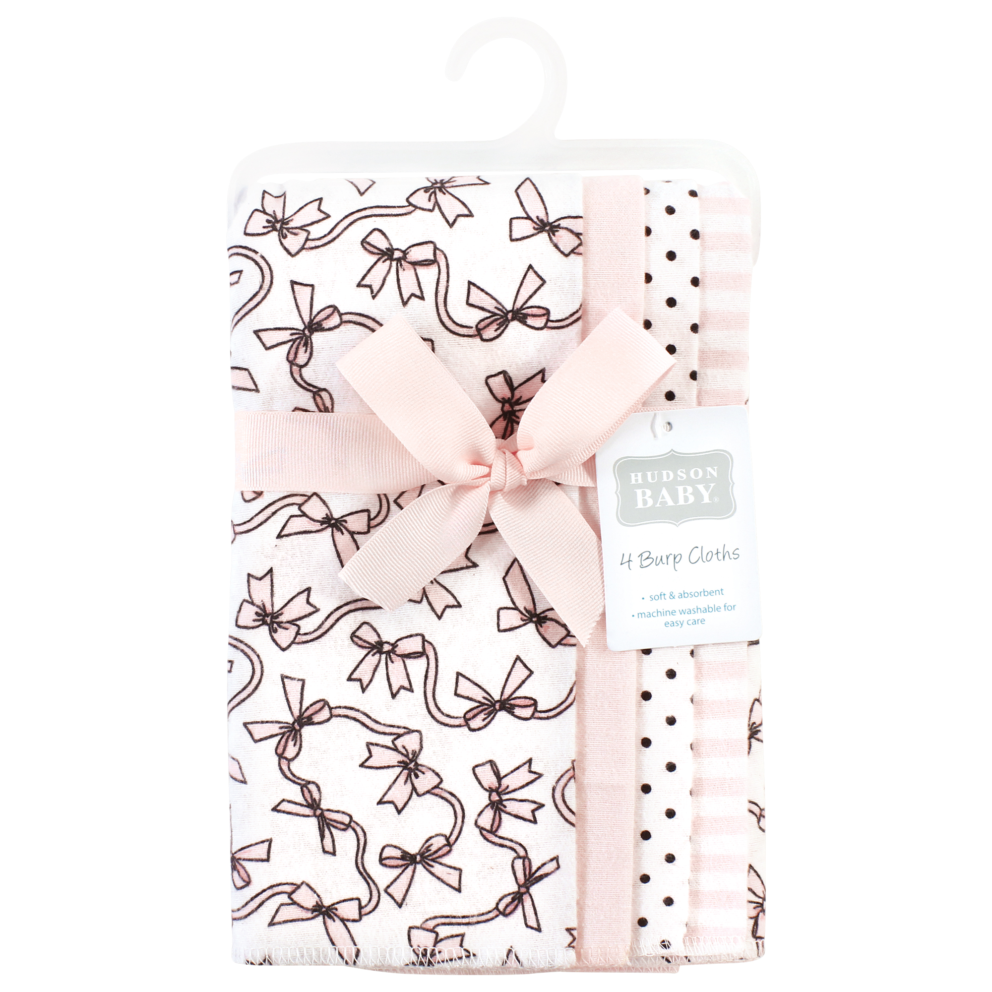 Hudson Baby Cotton Flannel Burp Cloths, Pink Bows 4 Pack