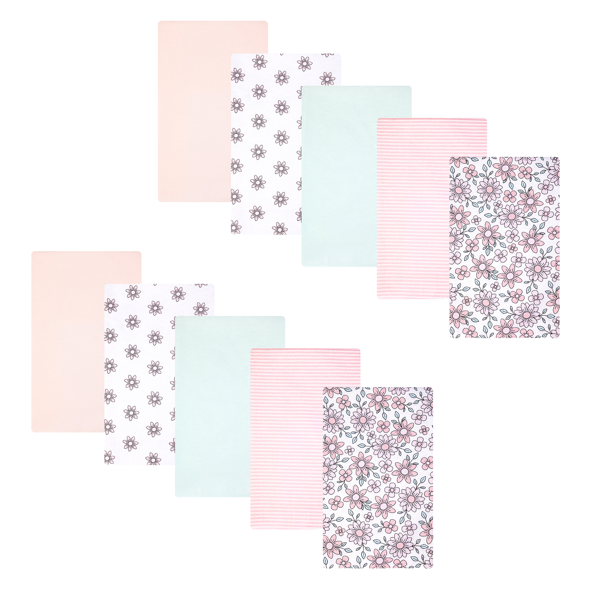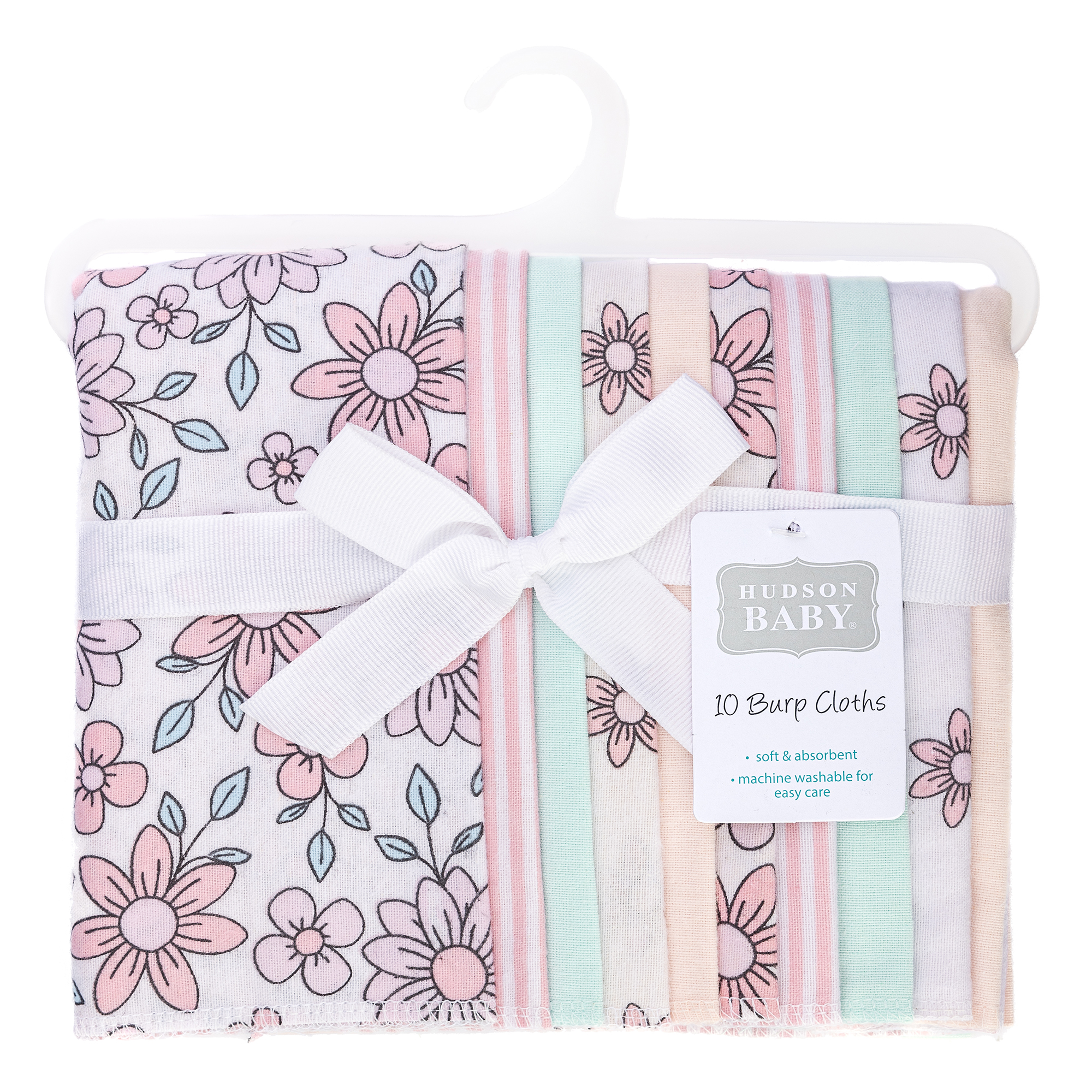 Hudson Baby Cotton Flannel Burp Cloths, Pink Mint Floral