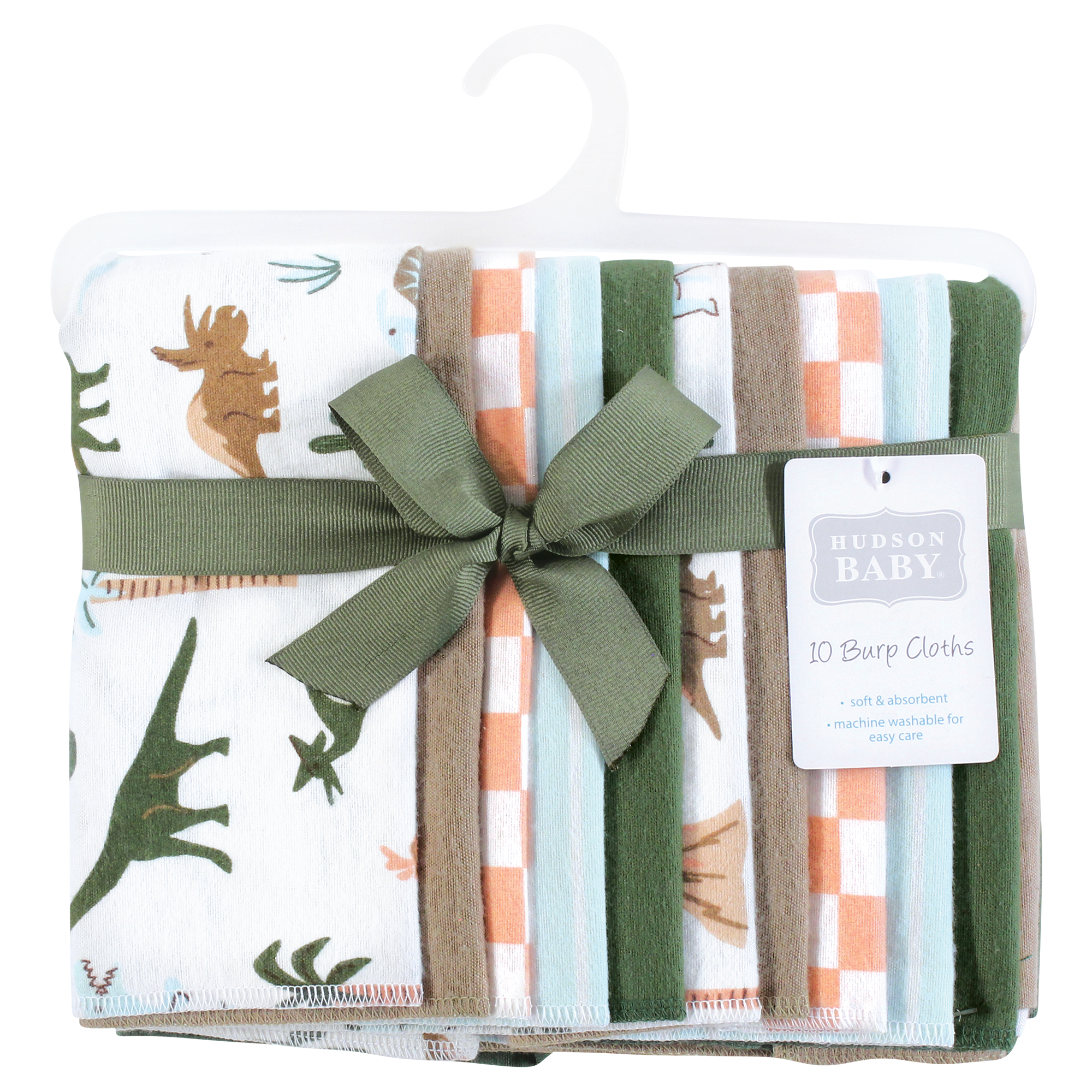 Hudson Baby Cotton Flannel Burp Cloths, Retro Dinosaur 10 Pack