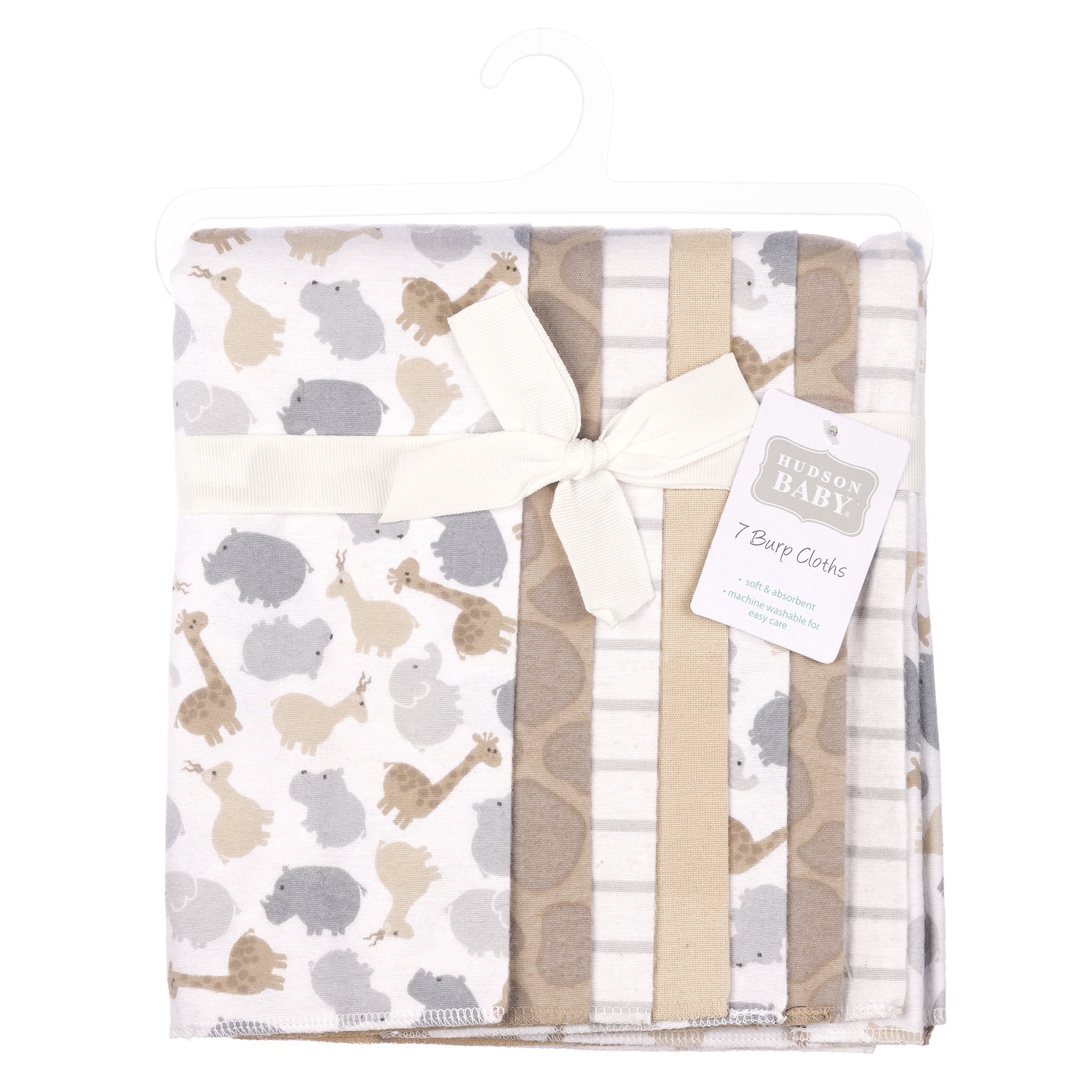 Hudson Baby Cotton Flannel Burp Cloths, Safari Friends 7-Pack