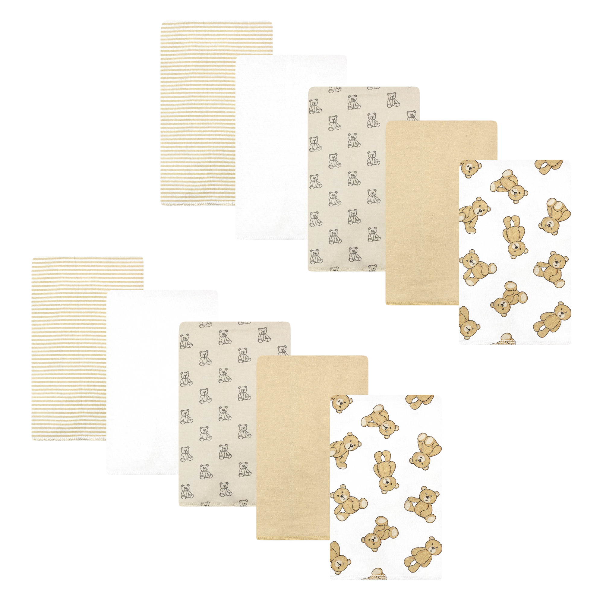 Hudson Baby Cotton Flannel Burp Cloths, Teddy Bears 10 Pack