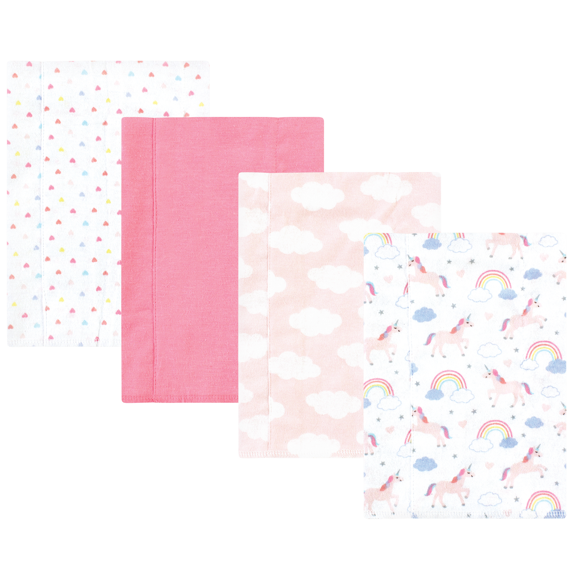 Hudson Baby Cotton Flannel Burp Cloths, Unicorns Rainbows 4 Pack