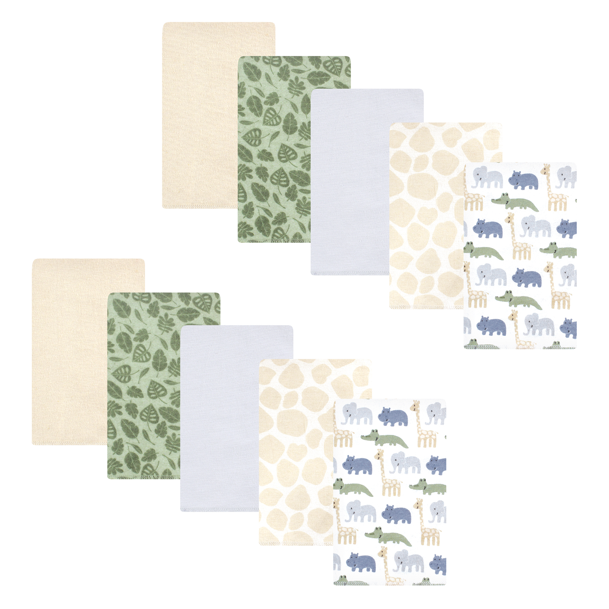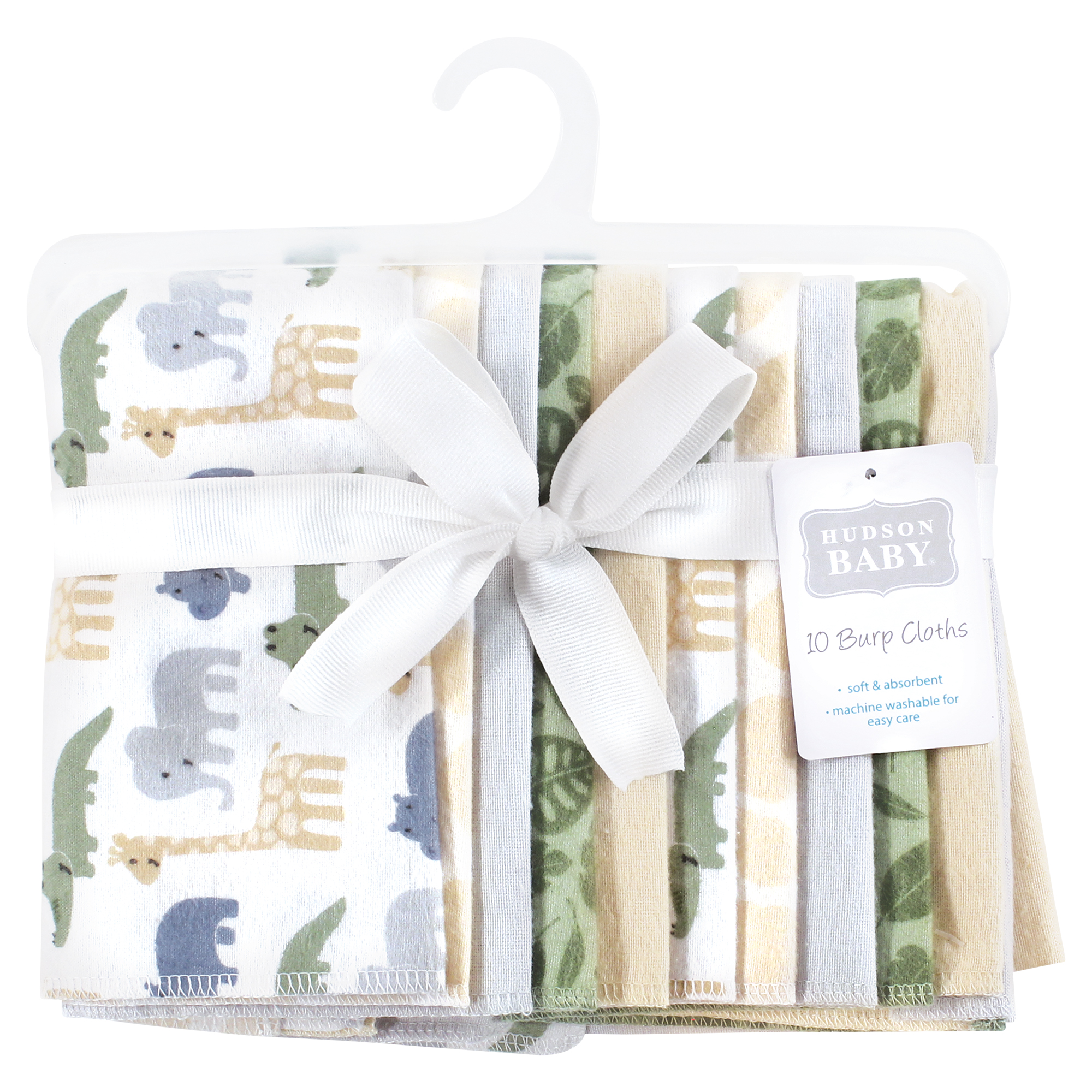 Hudson Baby Cotton Flannel Burp Cloths, Wild Leaf Safari 10-Pack