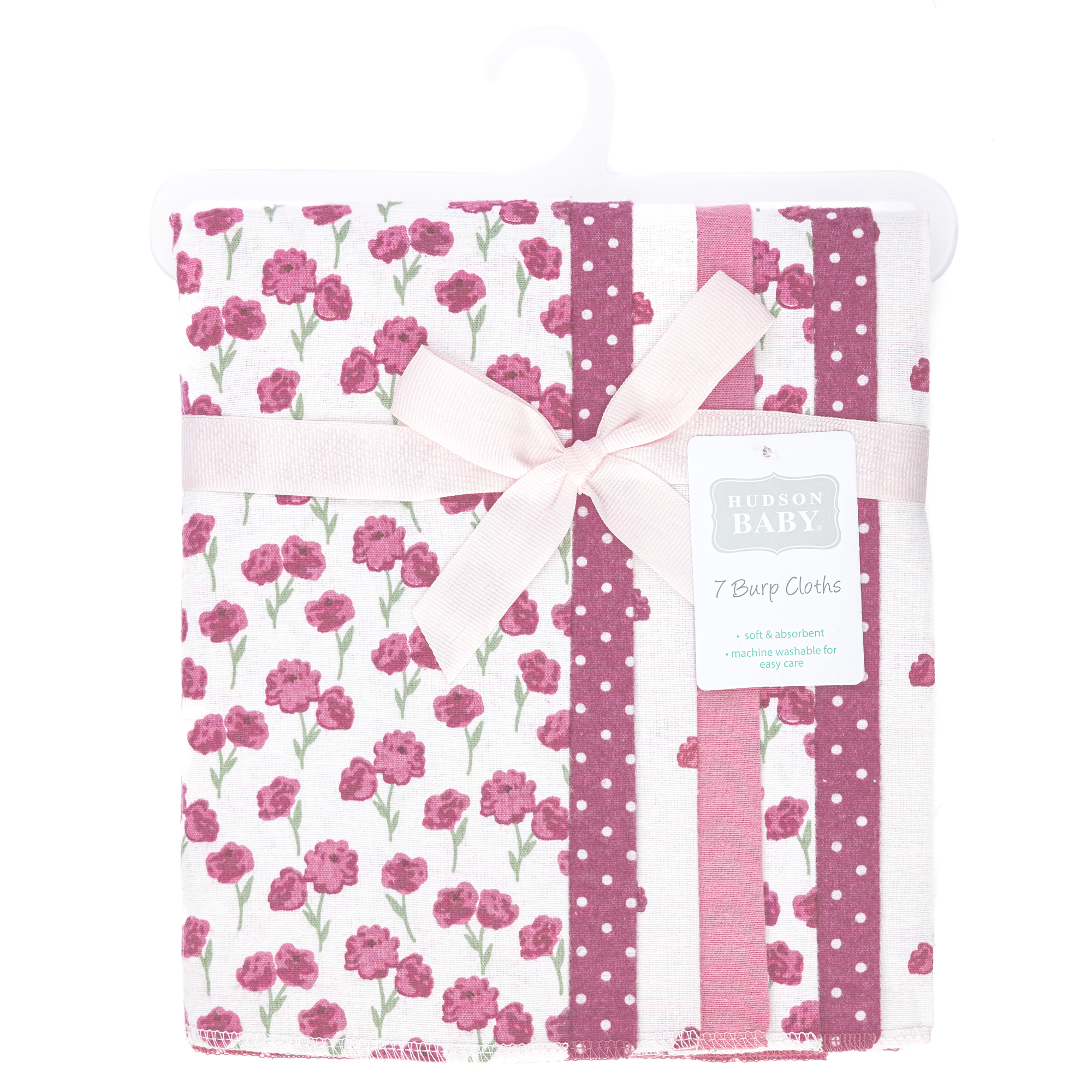 Hudson Baby Cotton Flannel Burp Cloths, Wild Rose Floral 1