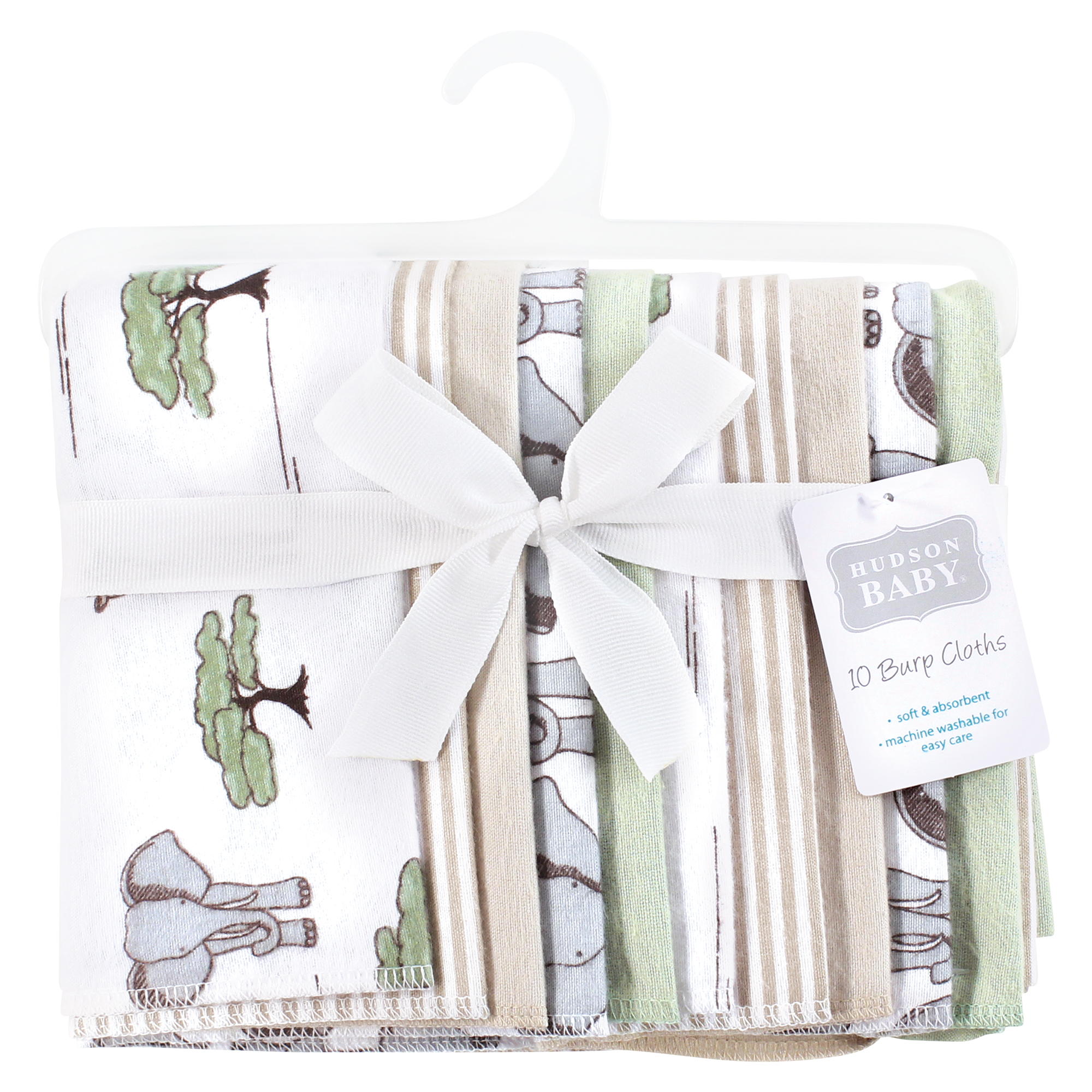 Hudson Baby Cotton Flannel Burp Cloths, Wild Safari Adventures 10-Pack