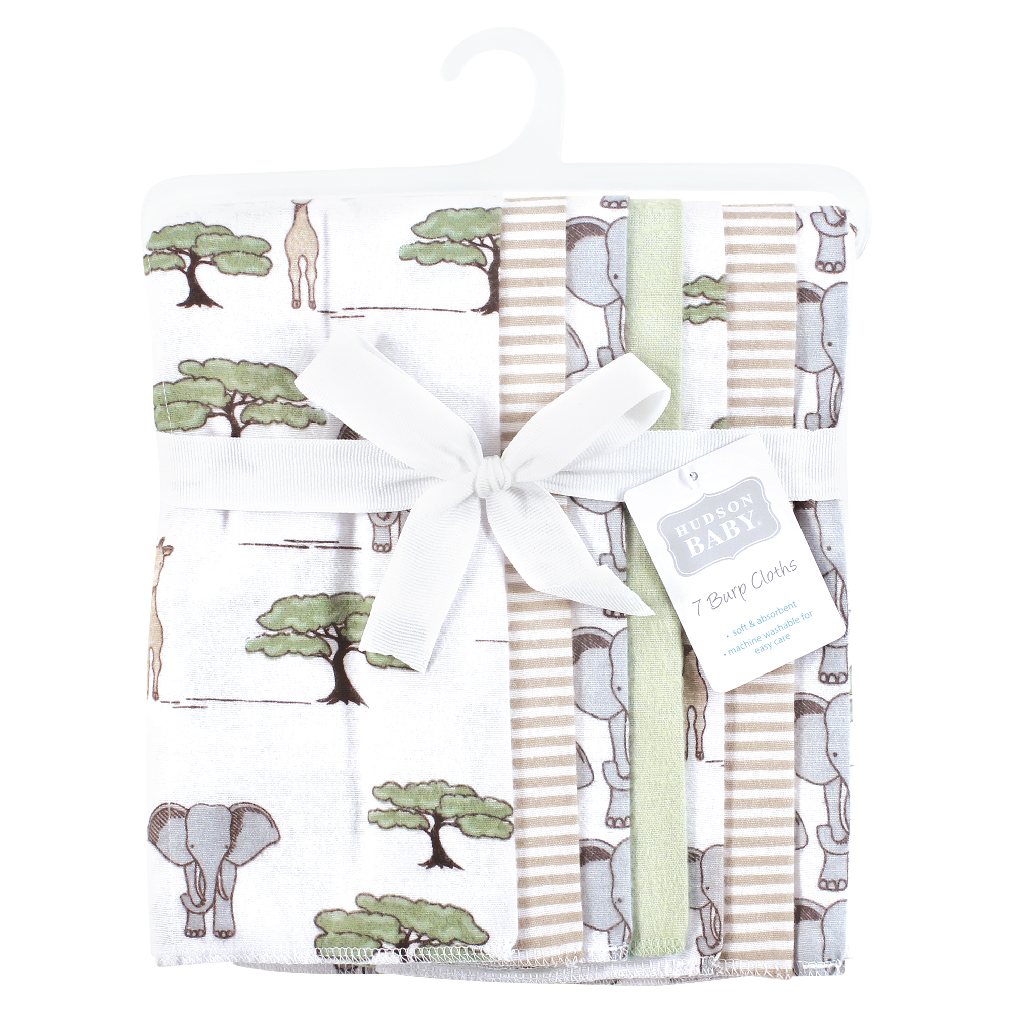 Hudson Baby Cotton Flannel Burp Cloths, Wild Safari Adventures 7-Pack
