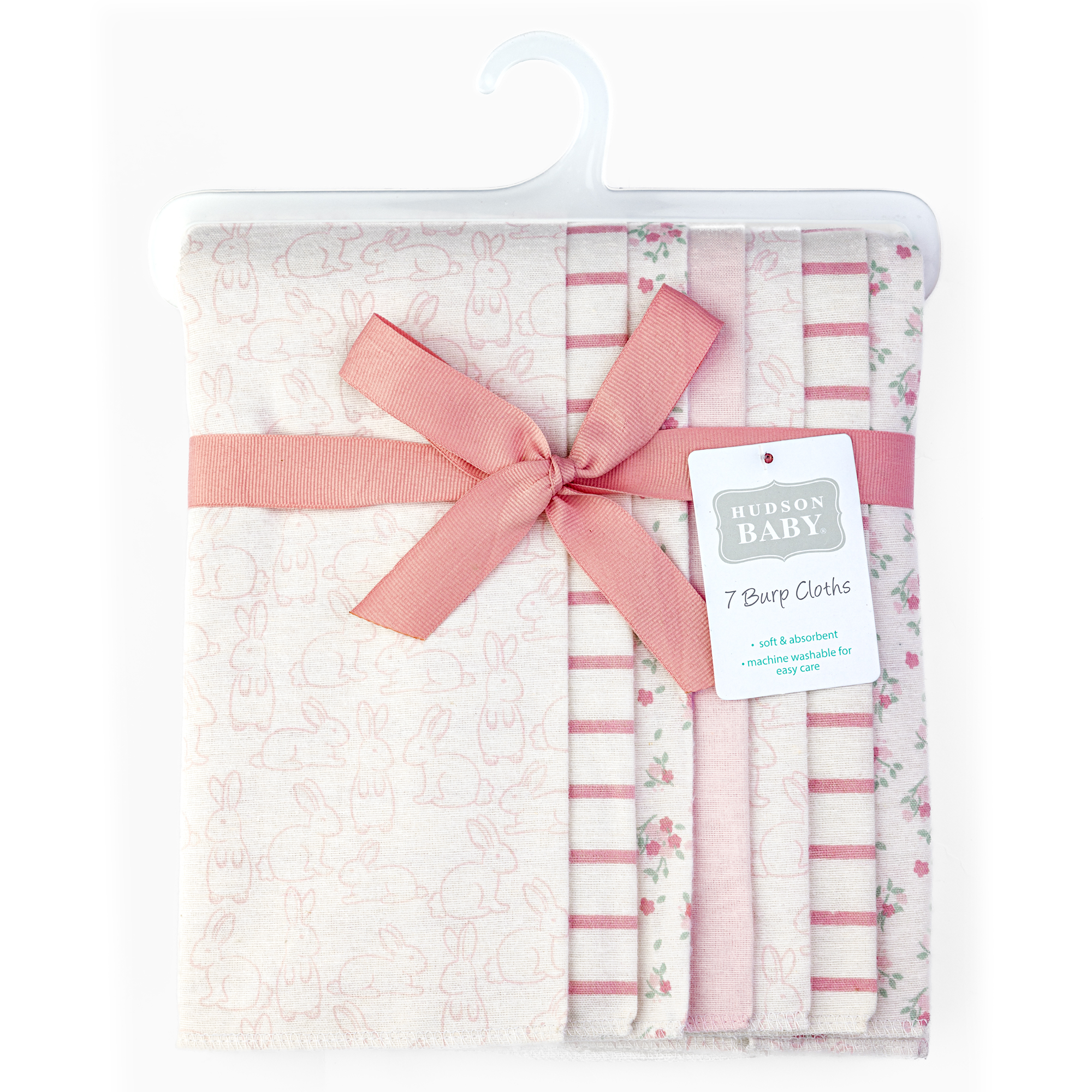 Hudson Baby Cotton Flannel Burp Cloths, Wispy Wild Flower Bunny 1