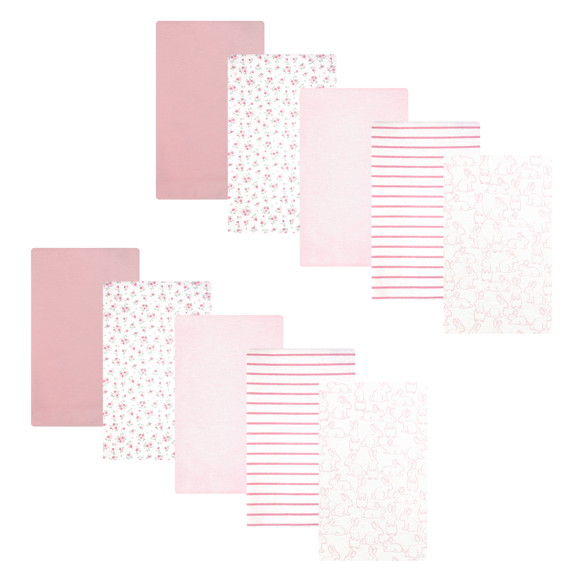 Hudson Baby Cotton Flannel Burp Cloths, Wispy Wild Flower Bunny 2