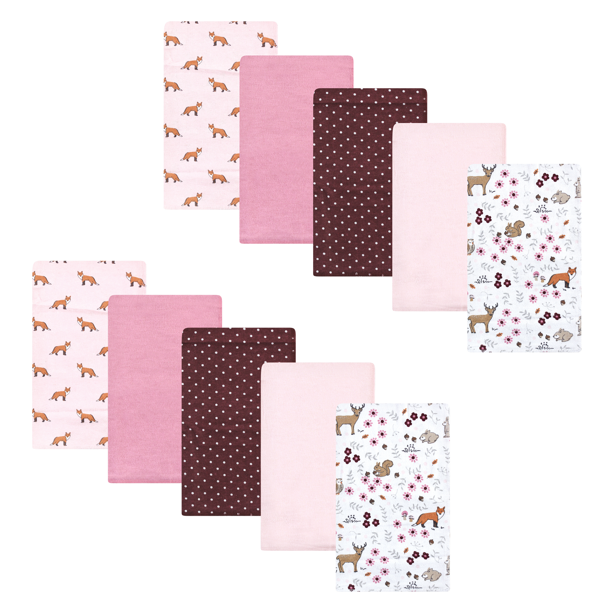 Hudson Baby flannel burp cloths feature multiple layers of fabric to help clean up the messes and spills that you are bound to encounter with your new baby. Our burp cloths are soft and gentle when used on baby's skin and help protect parent's clothes from drool and spills while feeding, burping, and snuggling baby. Our burp cloths will come in handy everyday, whether you are hanging out at home, traveling, or leaving your little one at daycare.
