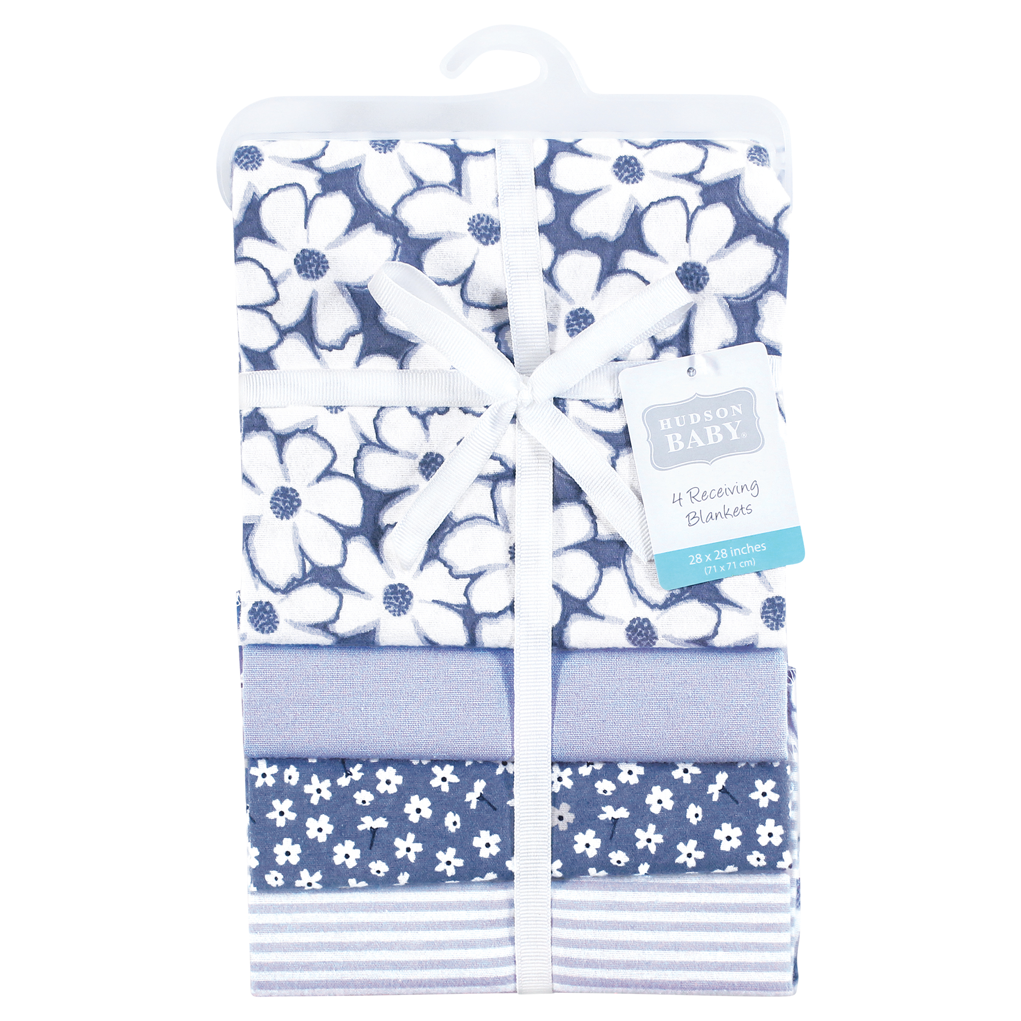Hudson Baby flannel receiving blankets are versatile baby blankets with a variety of uses. Great as a blanket, nursing cover, burp cloth, car seat cover, tummy time, changing pad cover and more. Our receiving blankets are made with 100% cotton polyester flannel for the softest touch on your baby's skin.