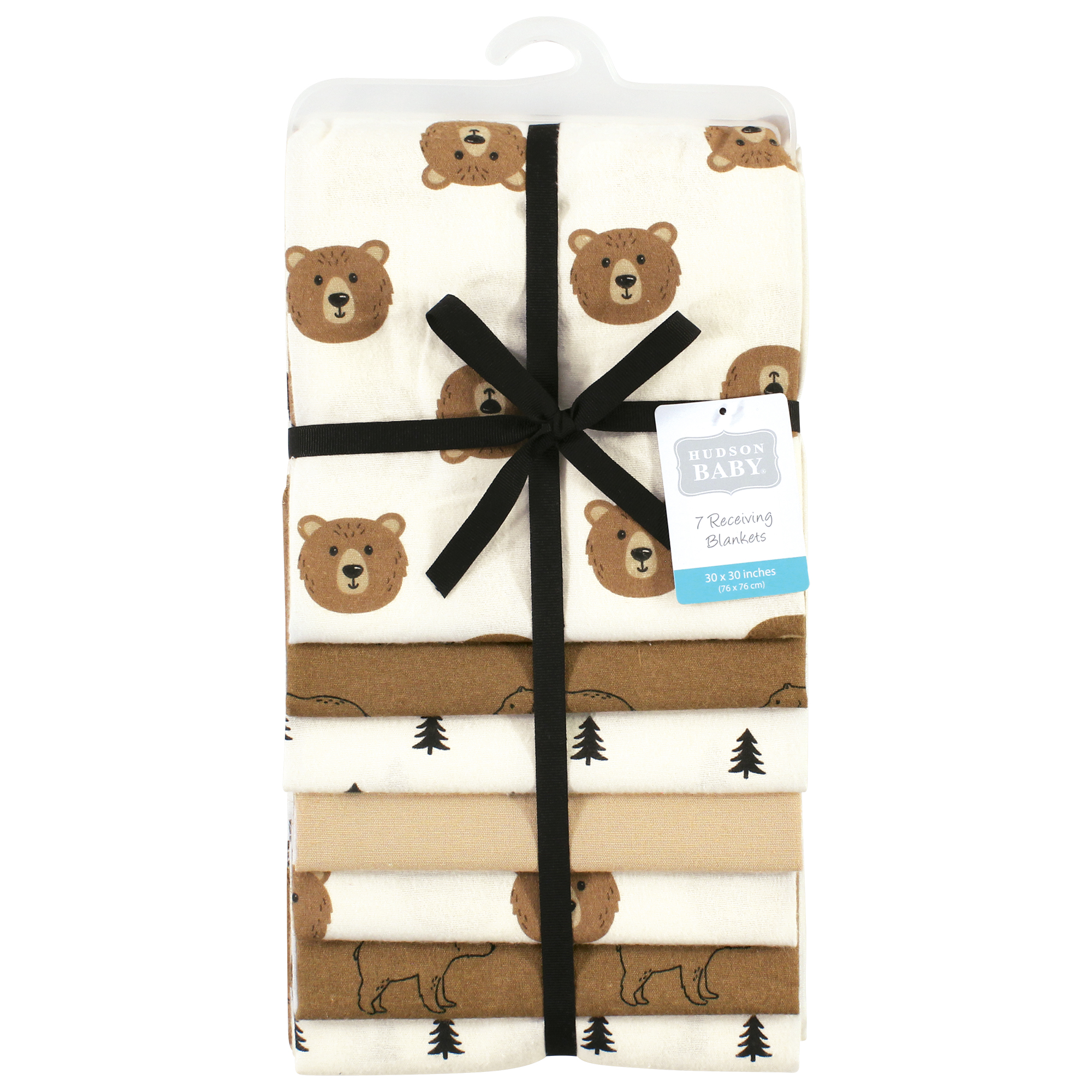 Hudson Baby Cotton Flannel Receiving Blankets Bundle, Brown Bear
