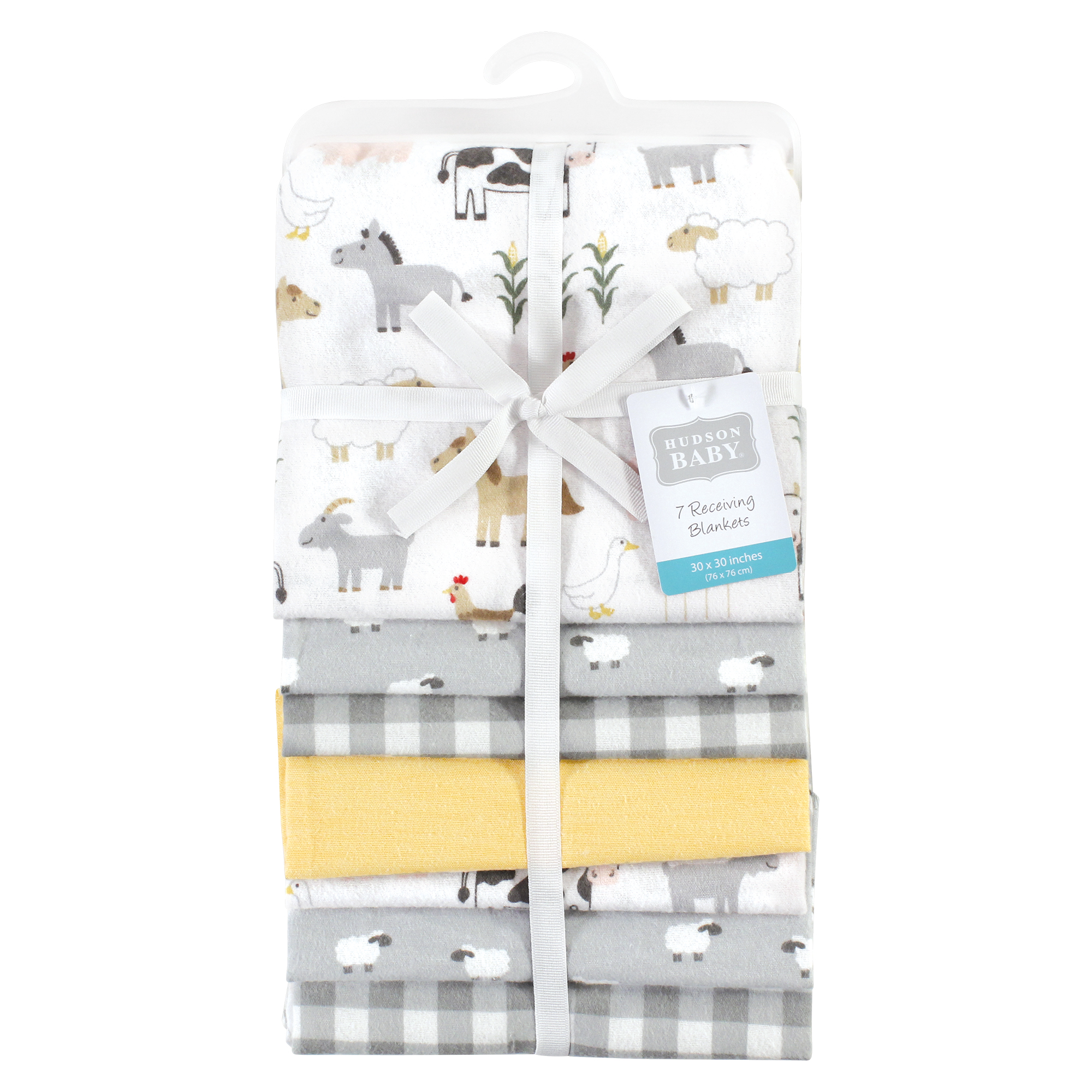 Hudson Baby Cotton Flannel Receiving Blankets Bundle, Cute Farm