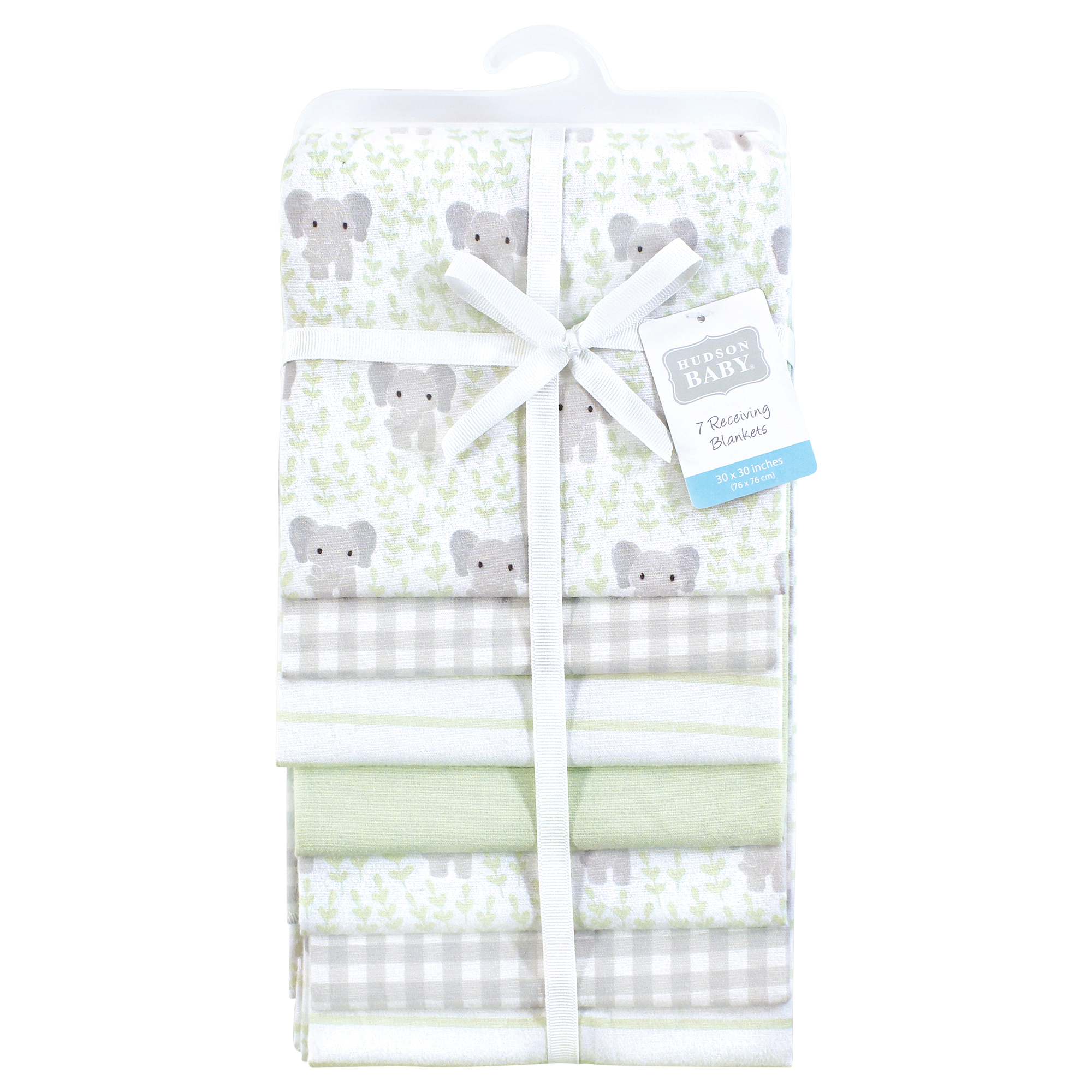 Hudson Baby Cotton Flannel Receiving Blankets Bundle, Leafy Elephant