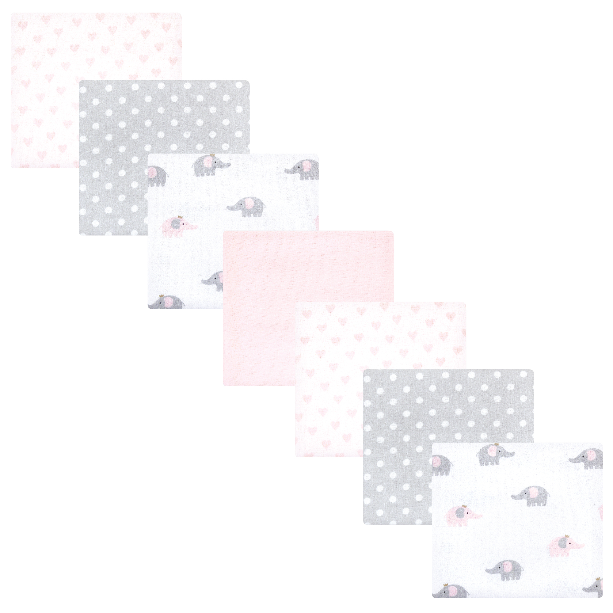 Hudson Baby Cotton Flannel Receiving Blankets Bundle, Pink Gray Elephant