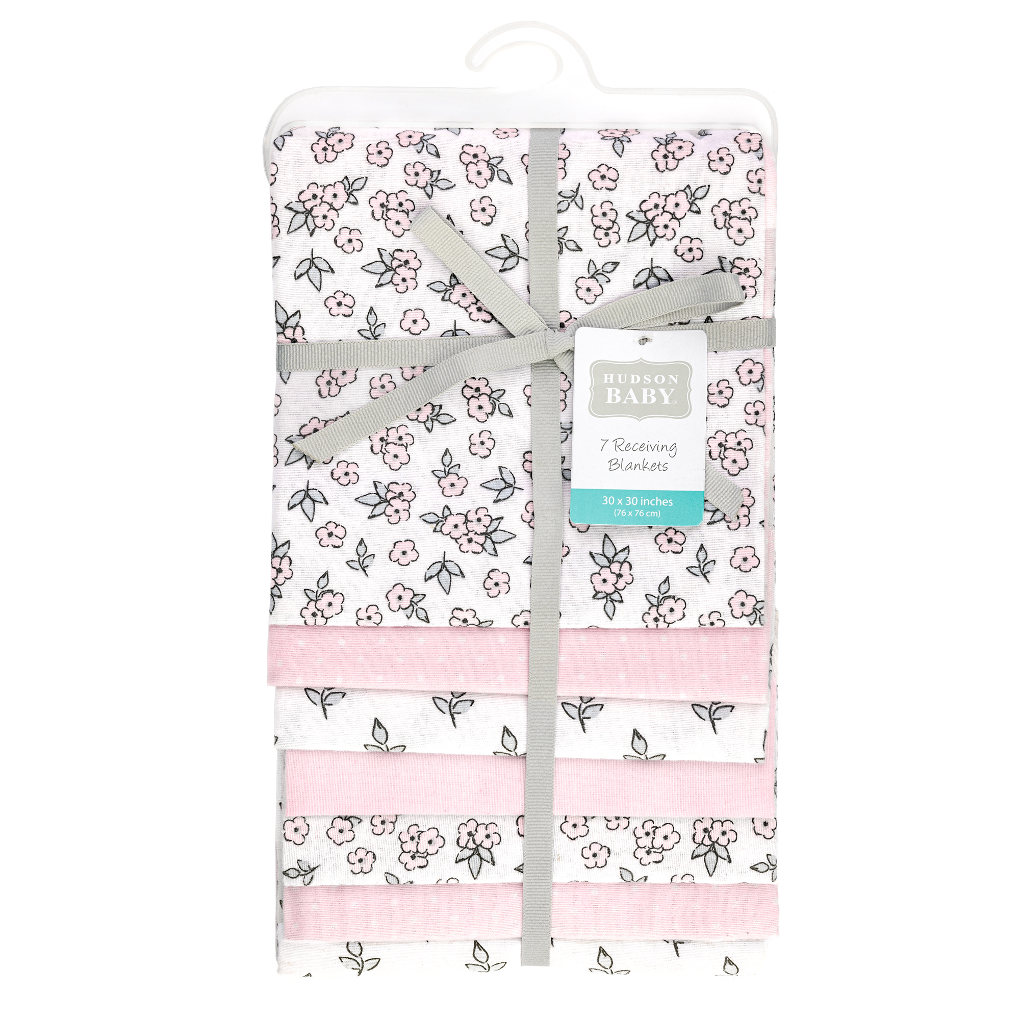 Hudson Baby Cotton Flannel Receiving Blankets Bundle, Pink Primrose