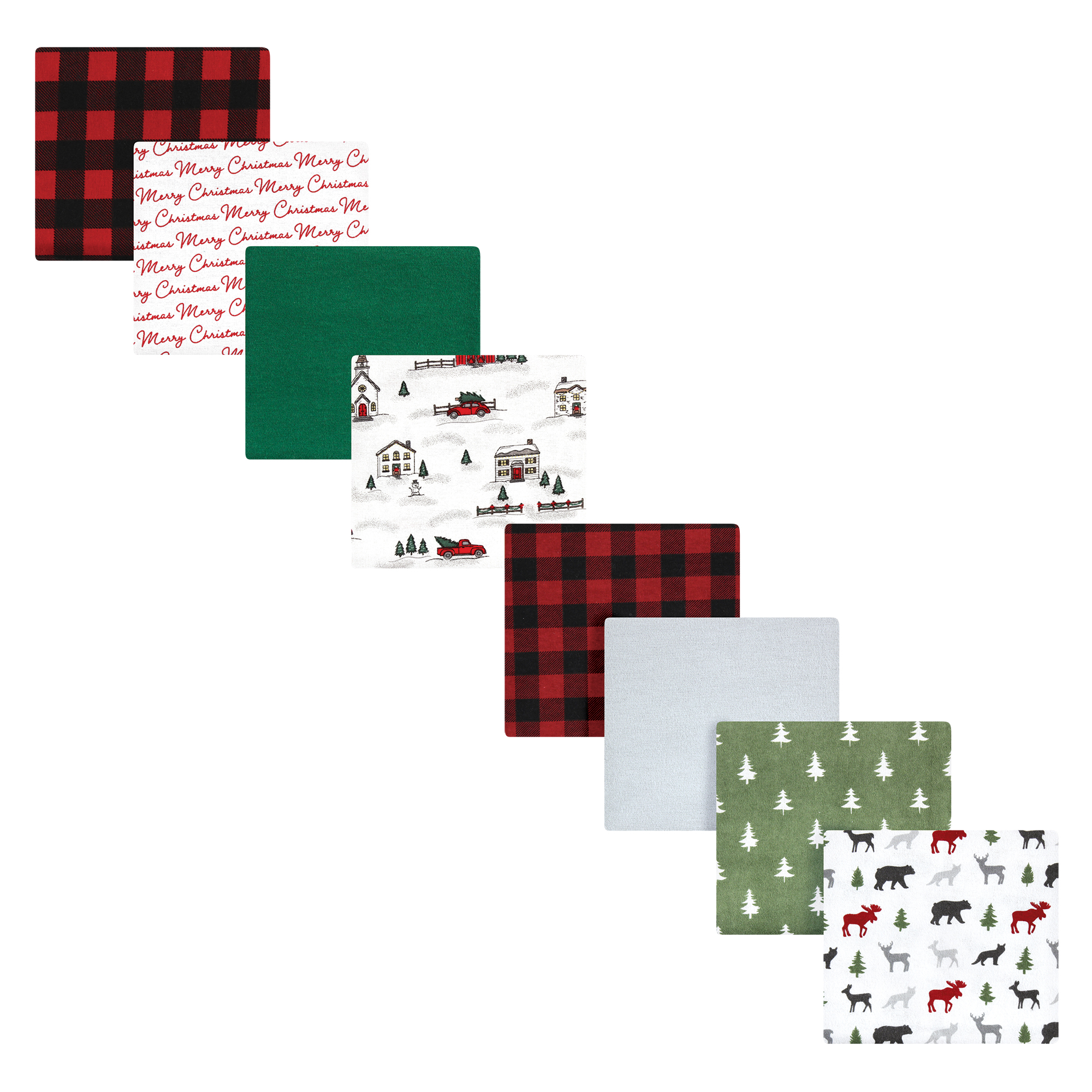 Hudson Baby Cotton Flannel Receiving Blankets Bundle Set, Christmas Scene Woodland Christmas