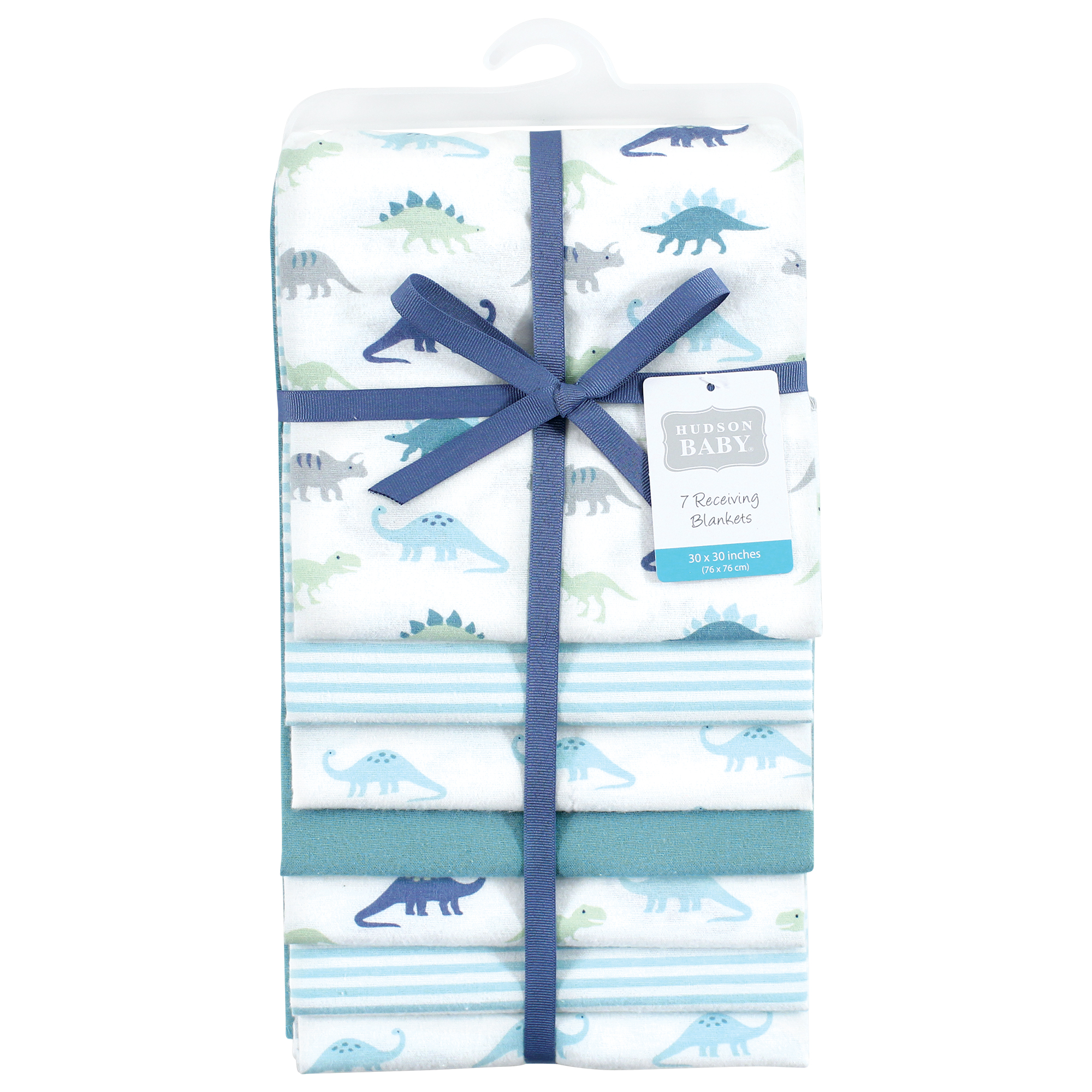 Hudson Baby Cotton Flannel Receiving Blankets Bundle, Soft Teal Dino