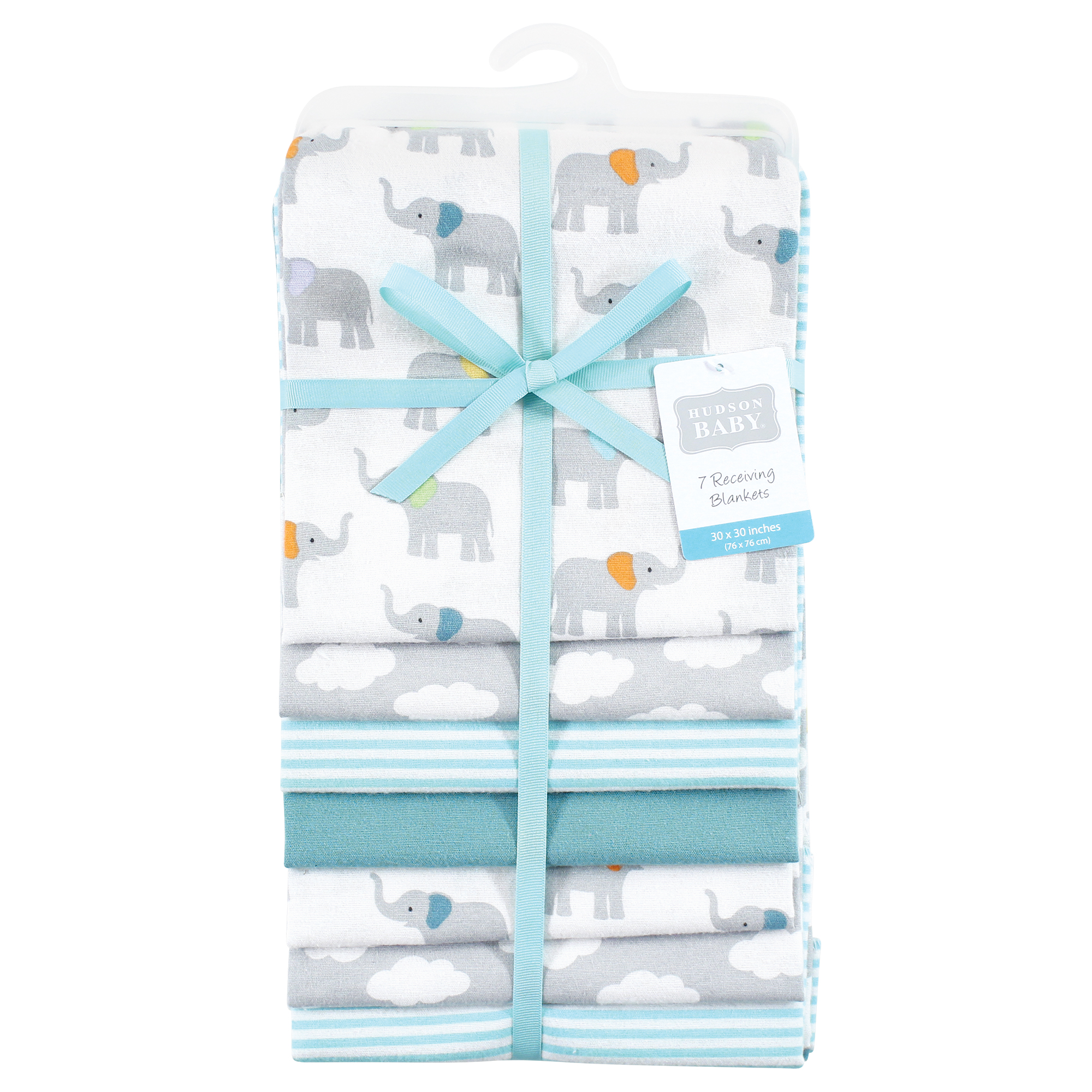 Hudson Baby Cotton Flannel Receiving Blankets Bundle, Teal Elephant