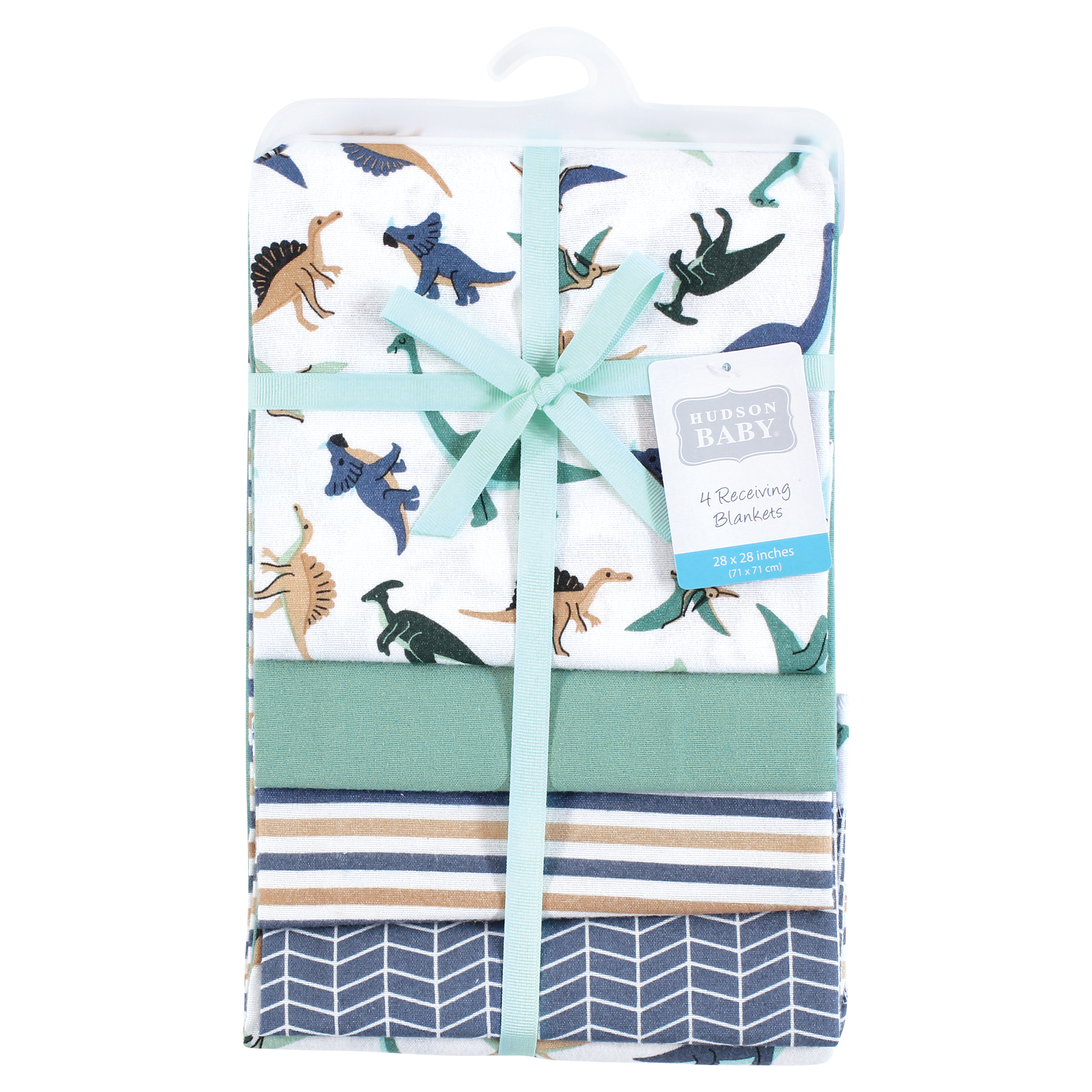 Hudson Baby Cotton Flannel Receiving Blankets, Dino Friends
