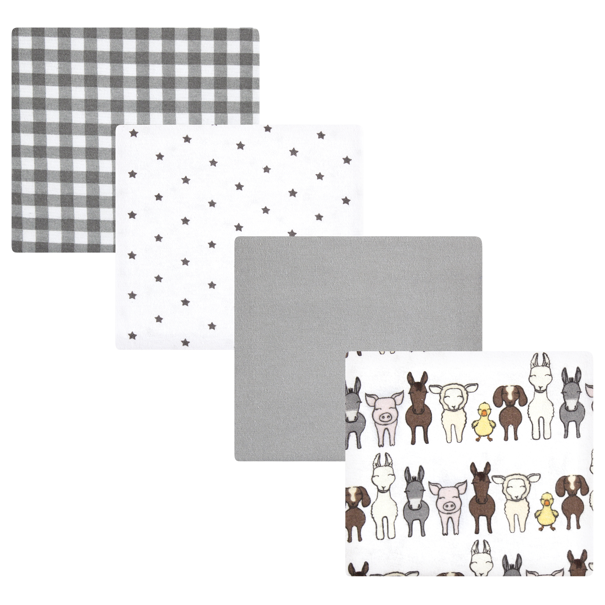 Hudson Baby Cotton Flannel Receiving Blankets, Farm Friends Grey