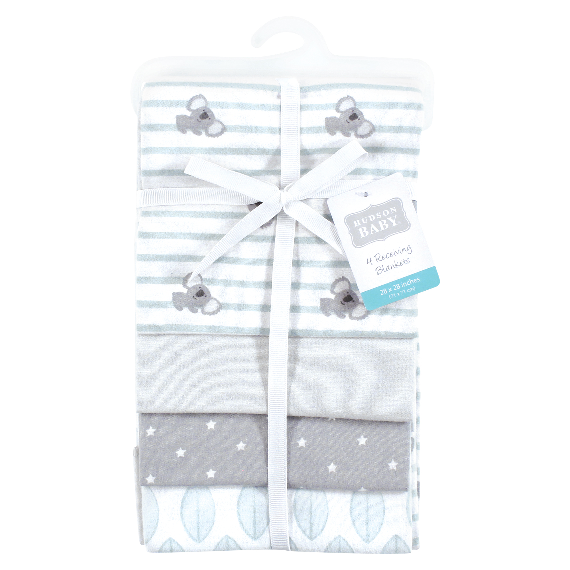Hudson Baby Cotton Flannel Receiving Blankets, Koala Stripe 4-Pack