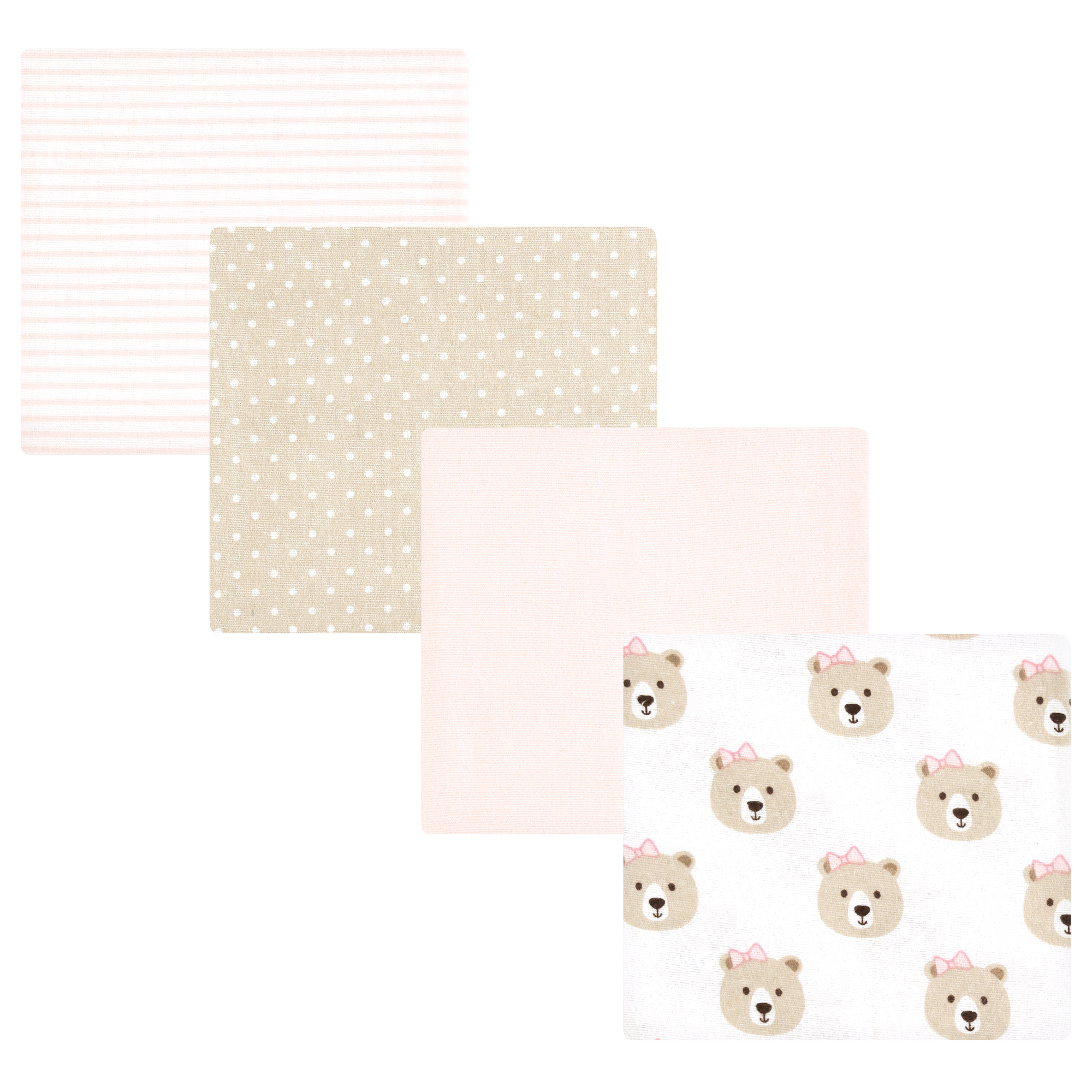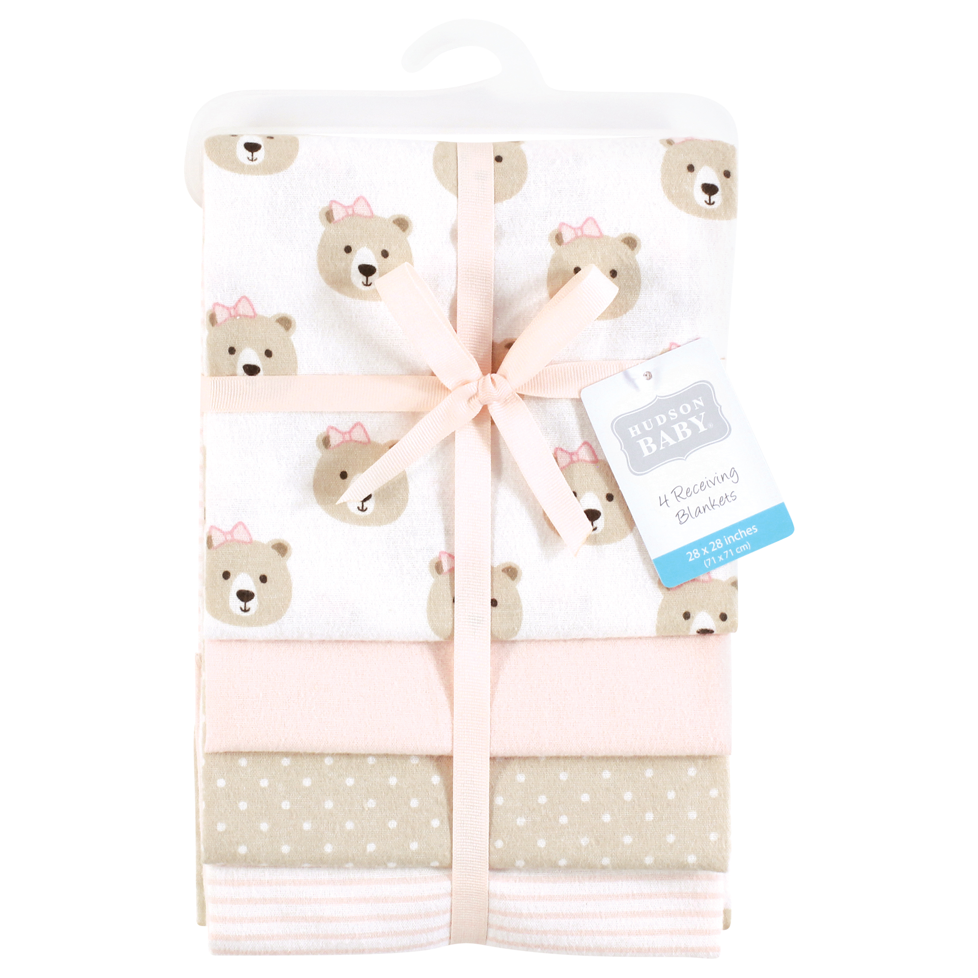Hudson Baby Cotton Flannel Receiving Blankets, Pink Taupe Bear