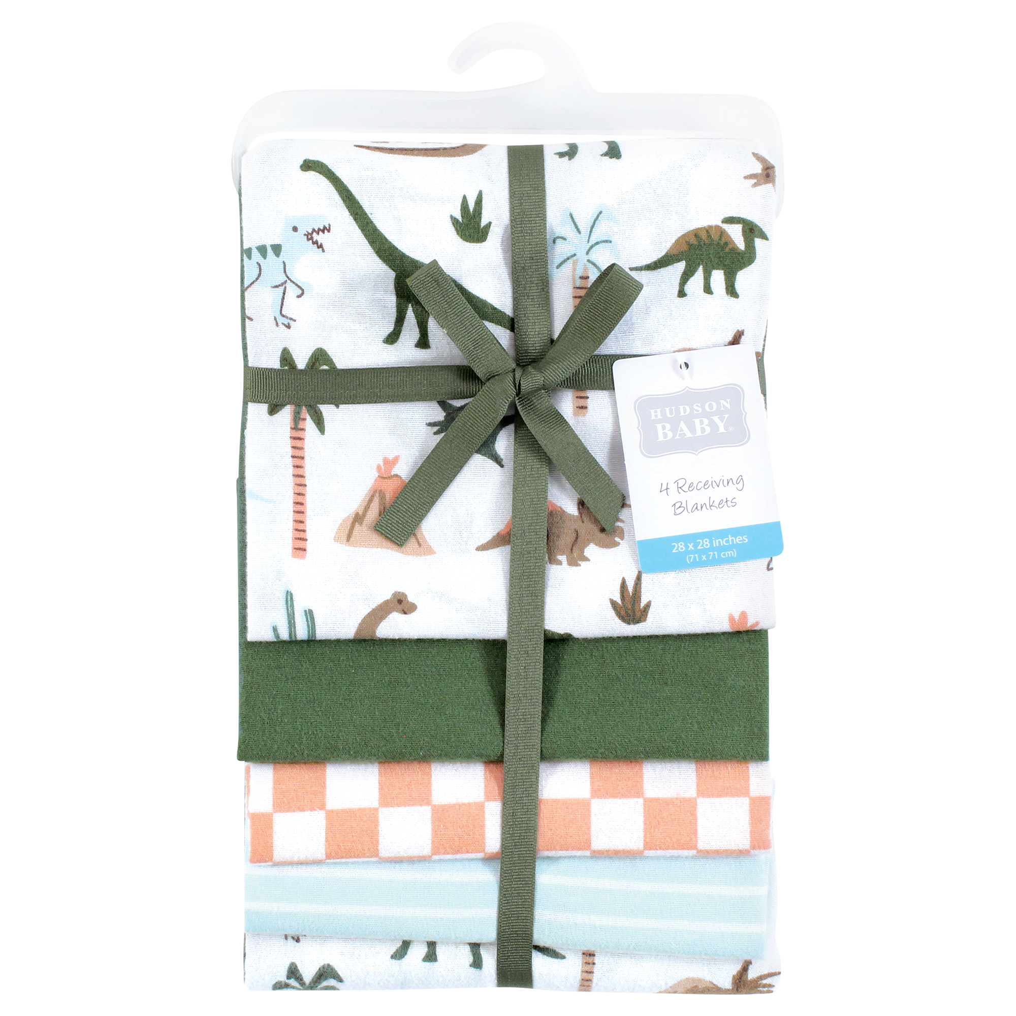 Hudson Baby Cotton Flannel Receiving Blankets, Retro Dinosaur