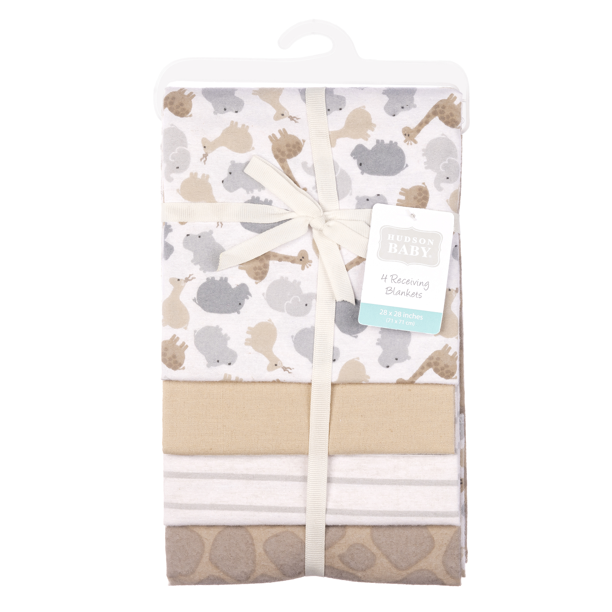 Hudson Baby Cotton Flannel Receiving Blankets, Safari Friends 4-Pack