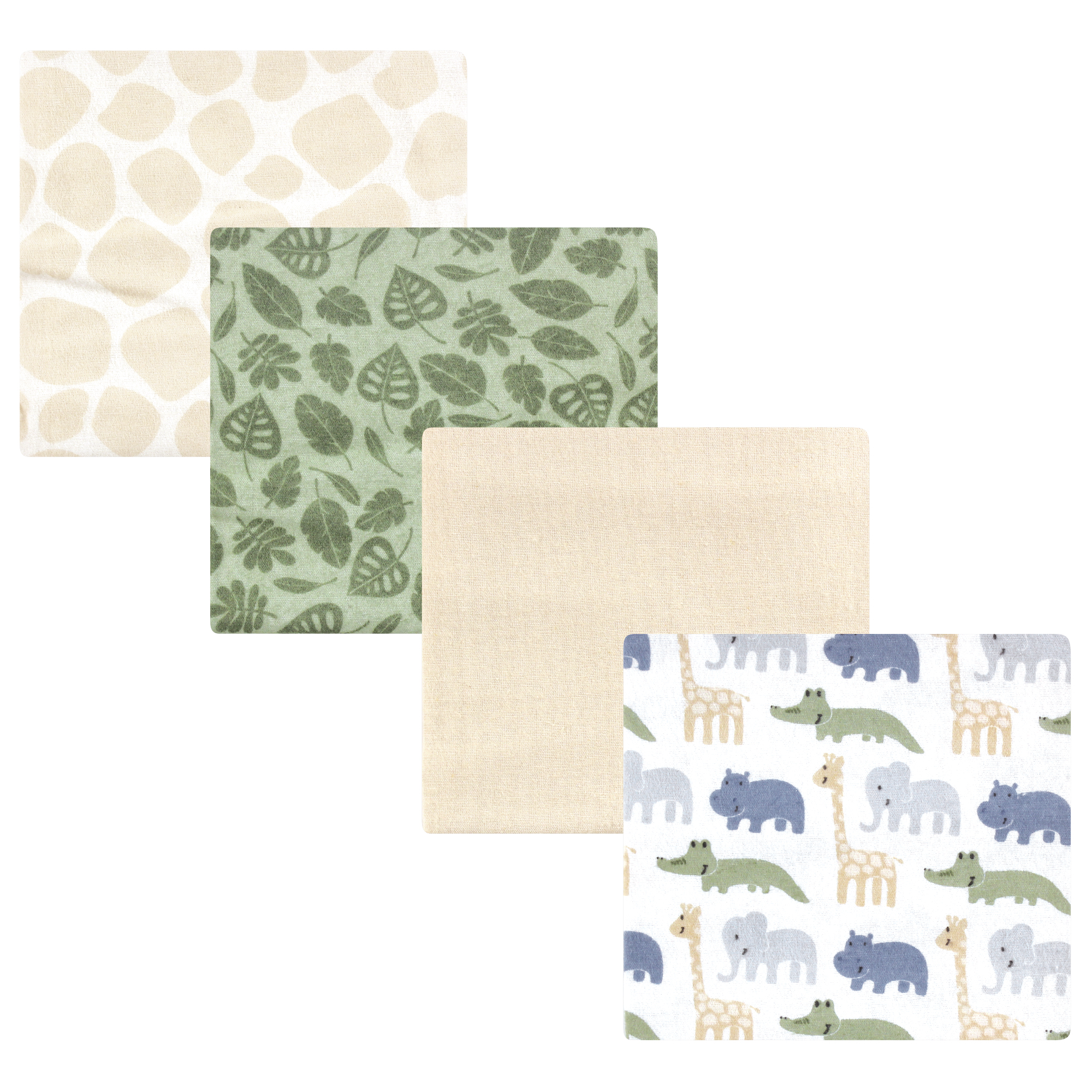 Hudson Baby Cotton Flannel Receiving Blankets, Wild Leaf Safari 4-Pack