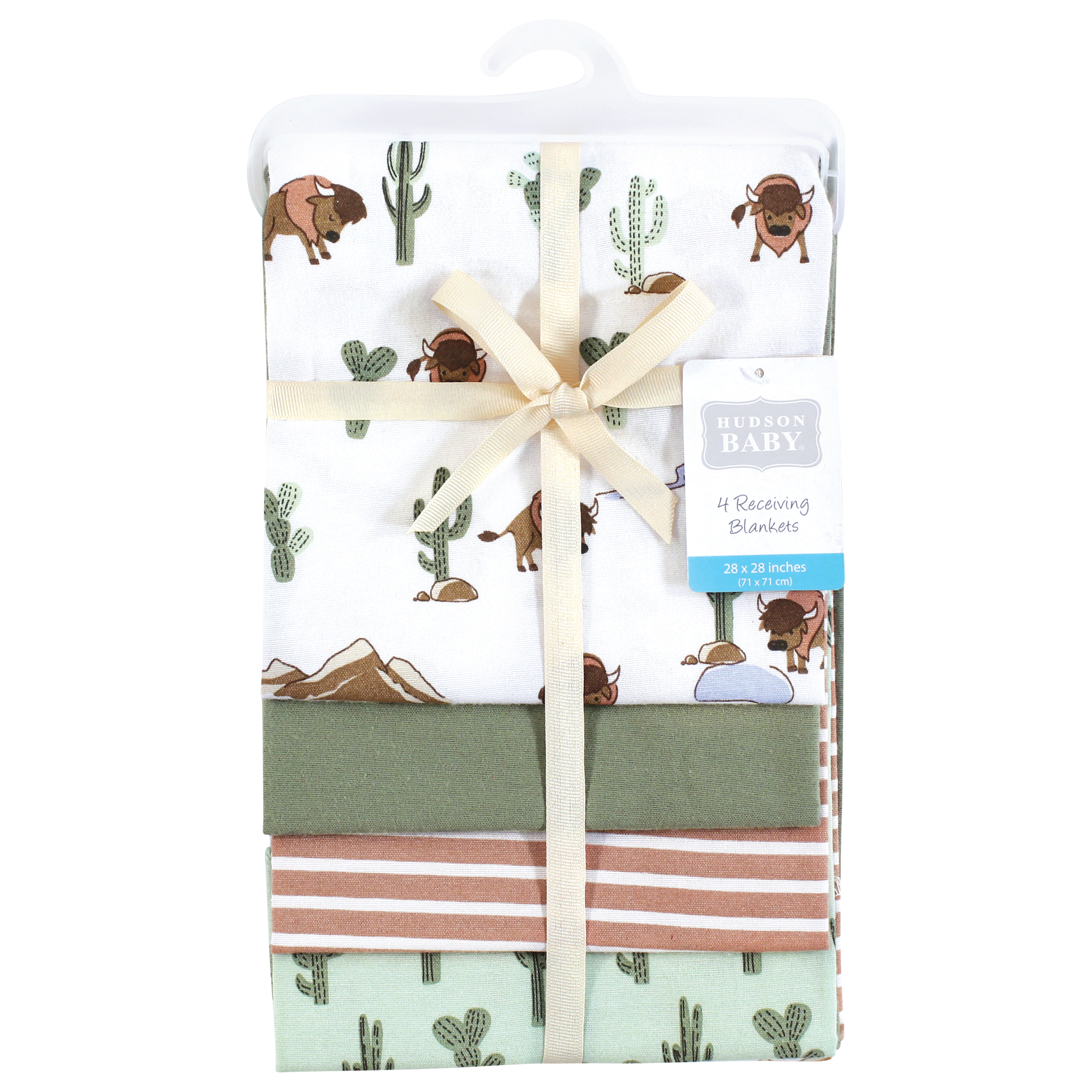 Hudson Baby flannel receiving blankets are versatile baby blankets with a variety of uses. Great as a blanket, nursing cover, burp cloth, car seat cover, tummy time, changing pad cover and more. Our receiving blankets are made with 100% cotton flannel for the softest touch on your baby's skin.