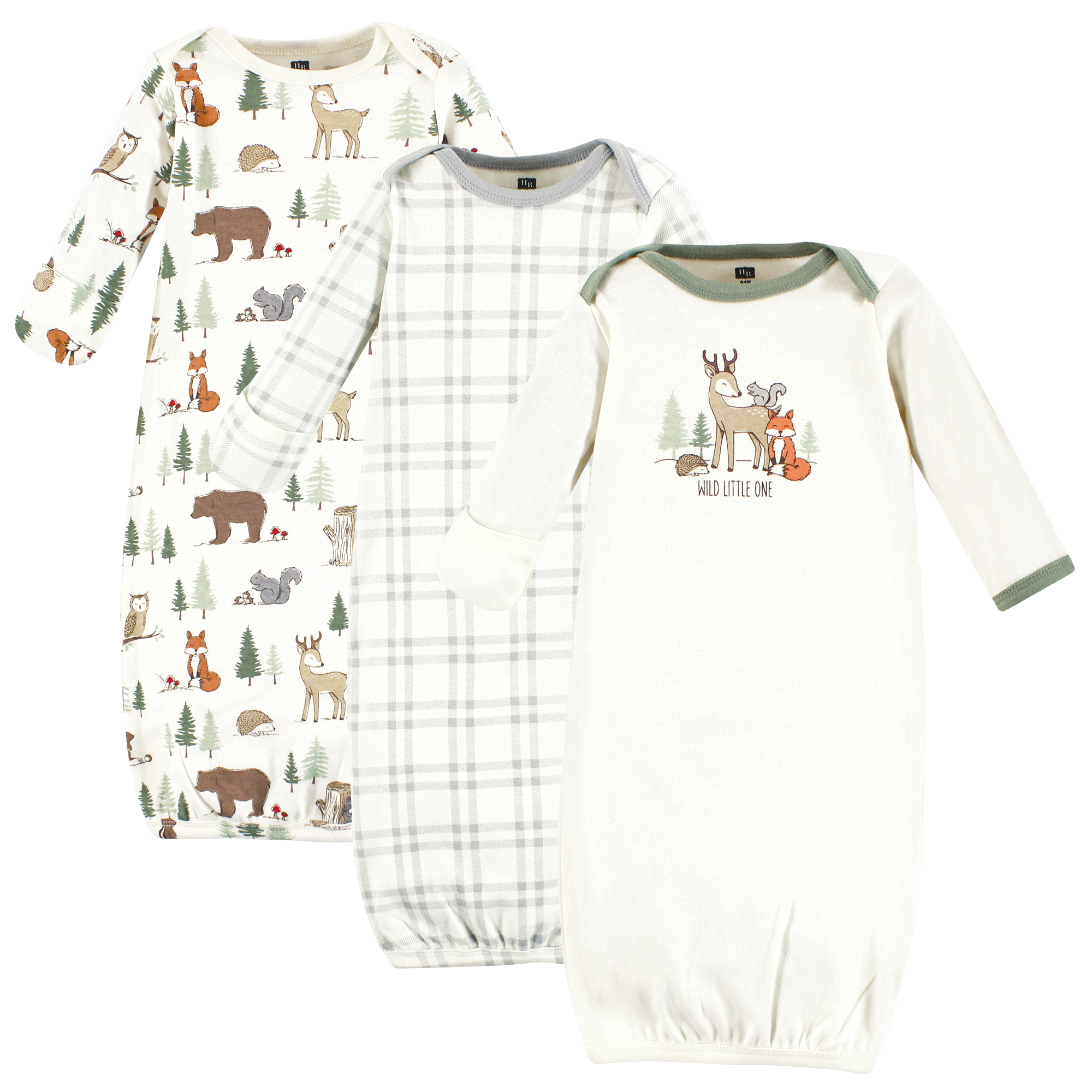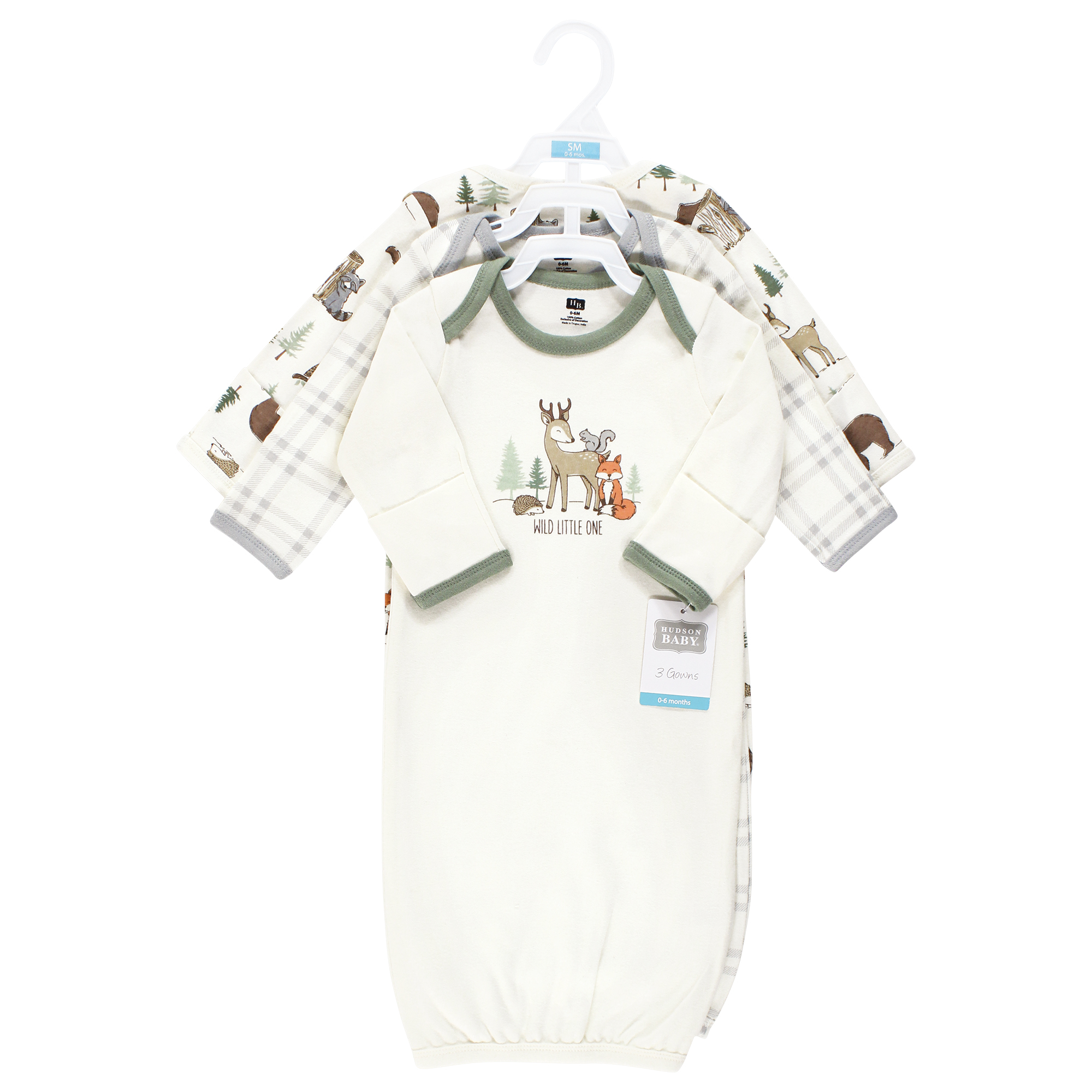 Hudson Baby cotton gowns are super comfortable and cozy and feature playful patterns for sweet dreams. An elastic band at the bottom and a lap neck make dressing and diaper changes simple.